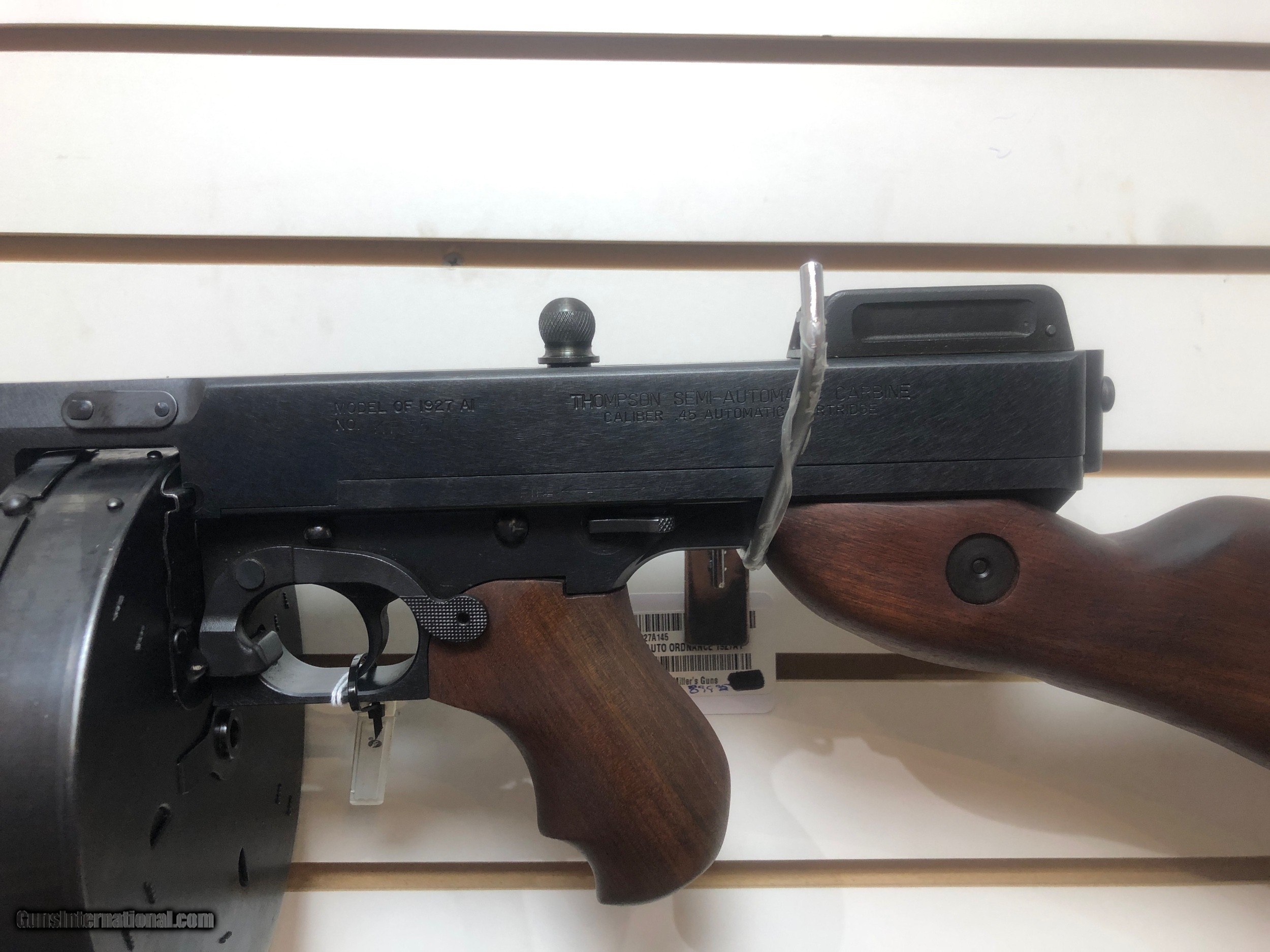 Description: Auto Ordnance 1927A1 Thompson Semi-Auto Carbine, WIth Box, With 50 Round Drum, With Leather Strap. Only fired 400 Rounds SOLD Manufacturer: Auto Ordnance Model: 1927A1 Serial Number: KP3573 Caliber Info: .45 |