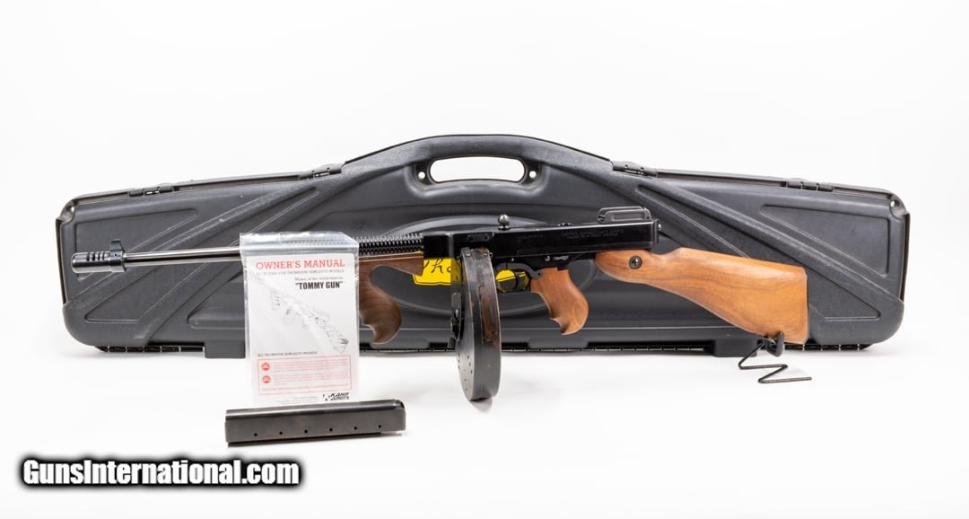 Description: Guns Listing ID: 1417995 Manufacturer: Auto-Ordnance Model: 1927 A1 Condition: Very good Caliber: 45 ACP Action: Semi-Auto Barrel Length: 16.5\" (with compensator: 18.5\") Overall Length: 40.5\" Capacity: 20+1 or 100+1 Finish: Blued metal, American walnut wood furniture Sights: Open rear adjustable with front blade. Features: Pinned Cutts compensator, T5 lightweight aluminum alloy frame, vertical foregrip. Inventory: Firearm, (1) 100-rd drum & (1) 20-rd stick magazines, original hard plastic case, manual. • We do not test fire used guns. All guns are function checked once we receive them. Unless stated otherwise, this firearm is functional. SOLD Manufacturer: AUTO-ORDNANCE Model: Model 1927A1 Caliber Info: .45 ACP Condition: Used - Non-Certified Barrels: 16.5 BARREL Finish: BLACK W/ WOOD STOCK |