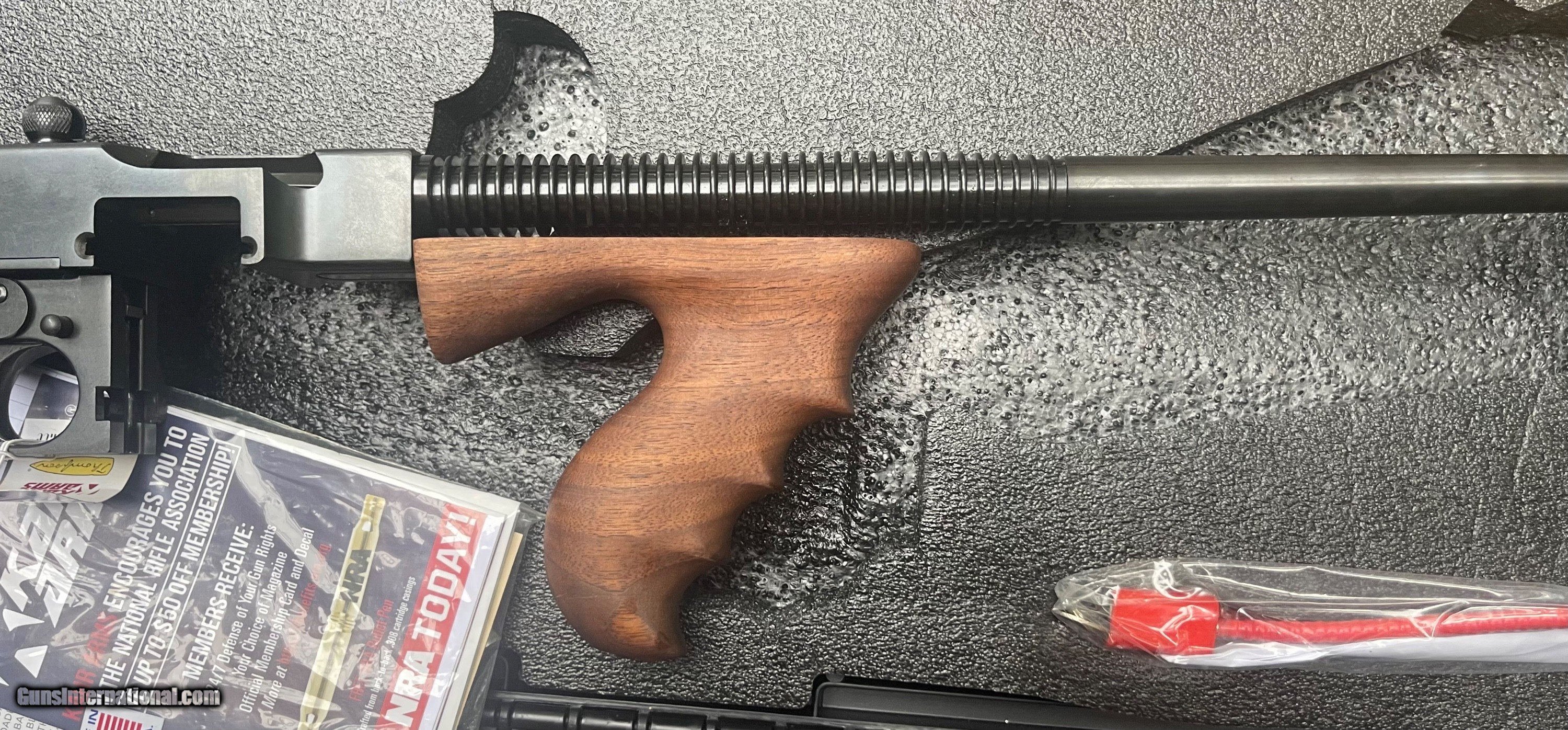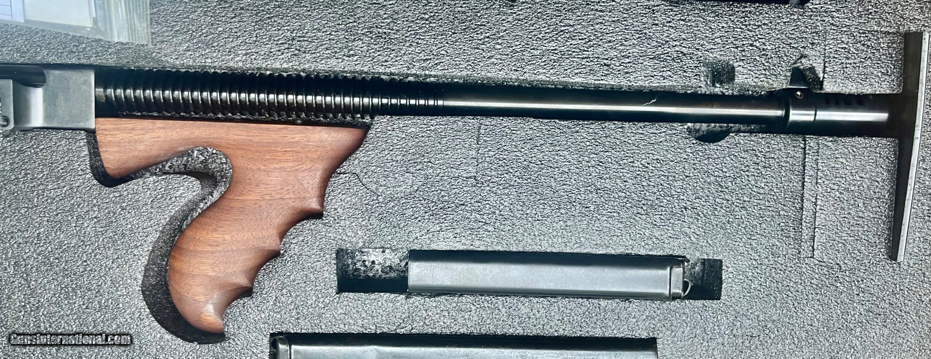 Description: New in Case. Blue steel semi automatic rifle caliber.45acp. Walnut stock. 50rd drum magazine. 1-20rd mag. 1-30rd we had in stock also included. All papers and accessories. Serious offers seriously considered. SOLD |