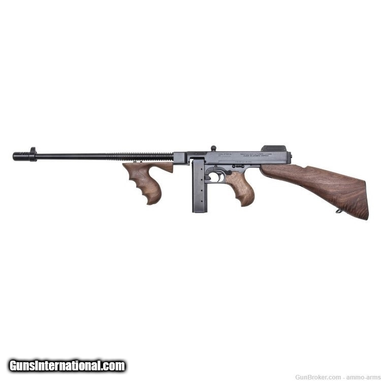 Description: Manufacturer: Auto-Ordnance/Kahr Arms Model: Thompson 1927A-1 Deluxe Sku: T1B100D Caliber: .45 ACP / AUTO Capacity: (1) 20 Round Stick Magazine and (1) 100 Round Drum Barrel: 16.5", Finned (with compensator 18") Weight: 13 lbs Overall Length: 41", 31.5" without Buttstock Sight: Blade front sight, open rear adjustable Stock: Walnut Detachable Buttstock and Vertical Foregrip All items are factory new in box unless otherwise stated. Based on the information available to us, the above specifications describe this item to the best of our knowledge. For further information, please contact or visit the manufacturer's . SOLD |