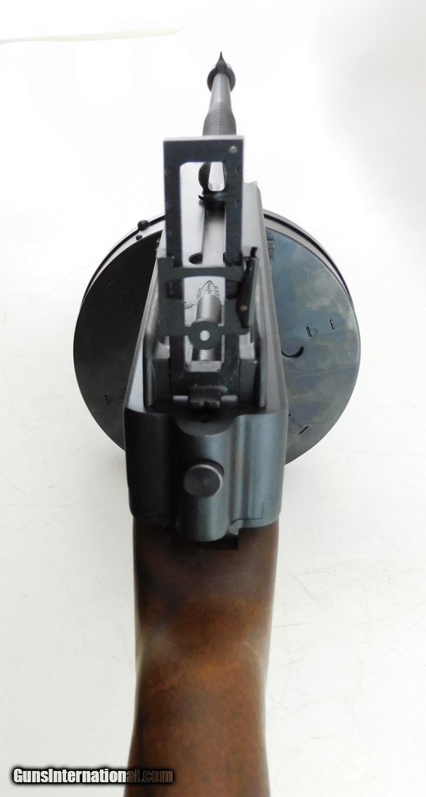 Description: Excellent Auto Ordnance Thompson 1927A1 .45 ACP WCase, 16.5" finned bbl (with compensator 18”), bright shiny bore, good rifling, blade front sight, adjustable open rear sight, Walnut fixed stock - pistol grip - vertical foregrip, sling loop, one 10 round drum magazine, bullet button included, and documents. This rifle appears to be as new, never fired! Great find for your collection! Add 3% for Credit Card Shipping $50.00 SOLD |
