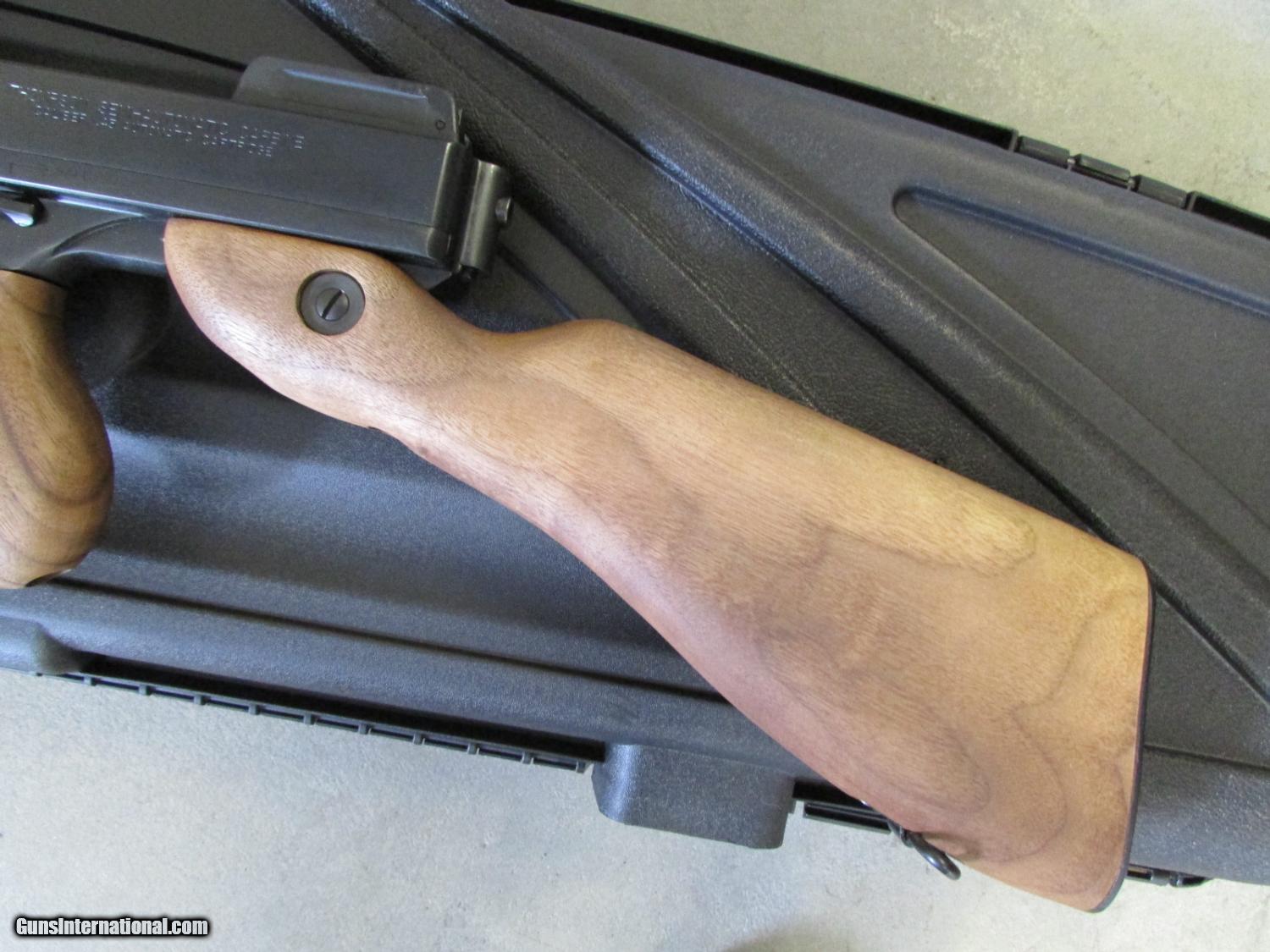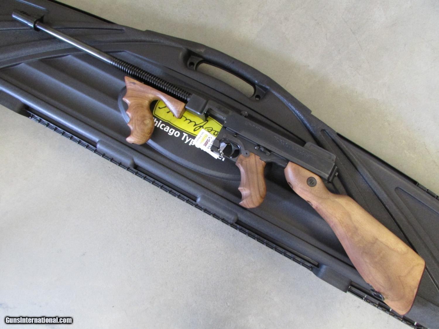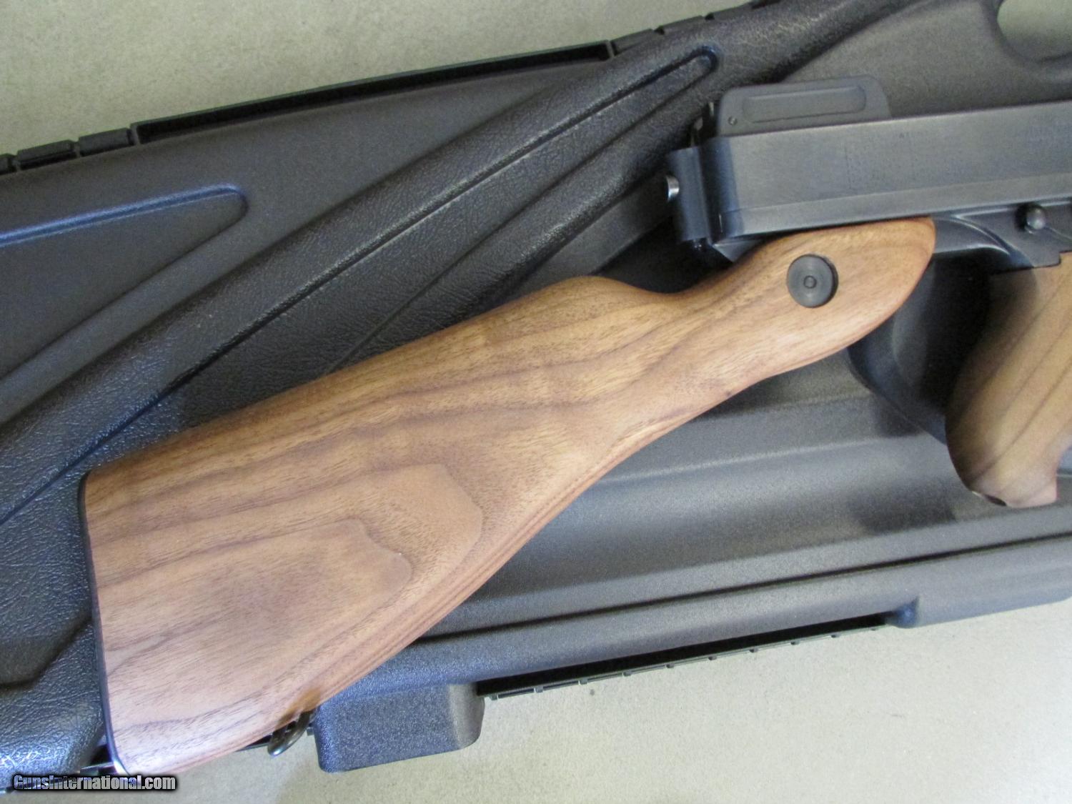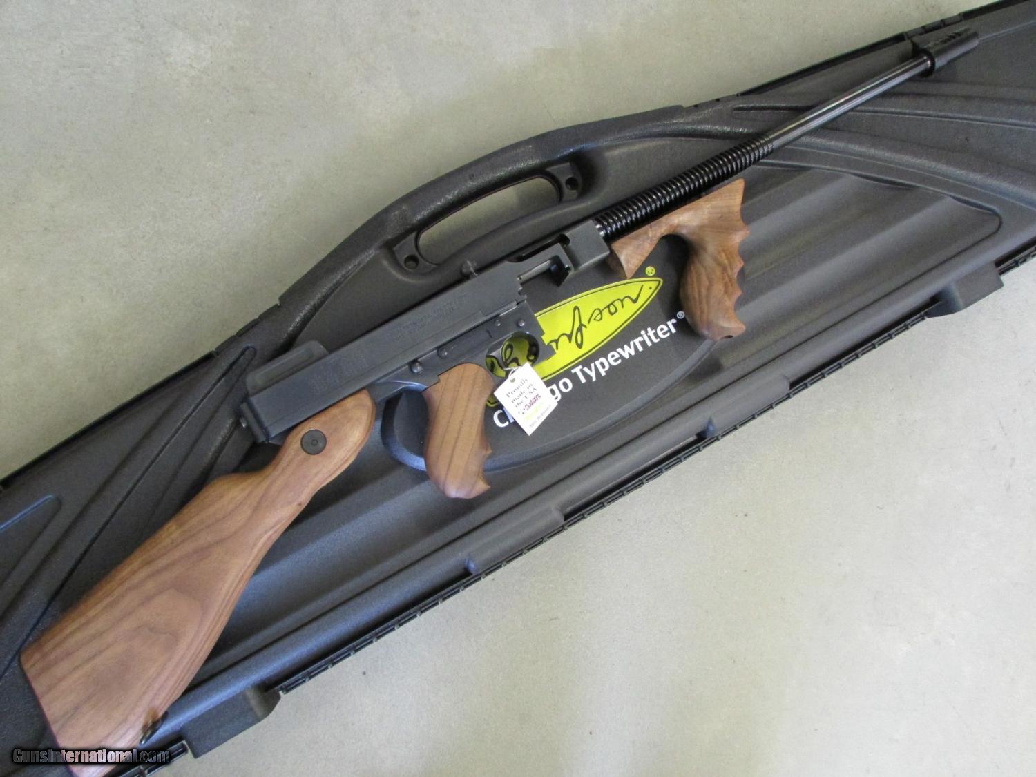 Description: Brand New in the Box, Ready to Ship! Buy It Now!! Blending superior ergonomics, high rate-of-fire, serious power and military-grade reliability, the original "Tommy Gun" earned a special place in the hearts of Allied troops, mobsters, police and civilians alike. And now, Auto-Ordnance is bringing the storied weapon into the modern age with this definitive reproduction. All the classic details of the time-honored original are reproduced in today's semi-automatic Thompson. Its receiver is machined from solid steel for long-term durability and the stock is cut from beautiful walnut. It's chambered in .45 ACP and comes equipped with a 16.5" finned barrel, adjustable sights and 10-rd. drum magazine. Caliber: .45 ACP Barrel twist: 1:16" Magazine: 10 round drum Finish: Parkerized finish Receiver Material: Steel receiver Action: Semi-automatic Barrel length: 16.5" Barrel style: Finned steel Stock: Blackened wood Sights: Blade front / open rear adjustable Overall length: 41" Overall weight: 13 lbs. Shipping to Lower 48 Only, Shipping $30.00, KNOW YOUR LOCAL AND STATE LAWS!! The prices on this item reflect a 2.5% cash, money order, or certified check discount. This discount is not valid for credit card purchases. Add 2.5% to the total cost for credit card purchases. SOLD |