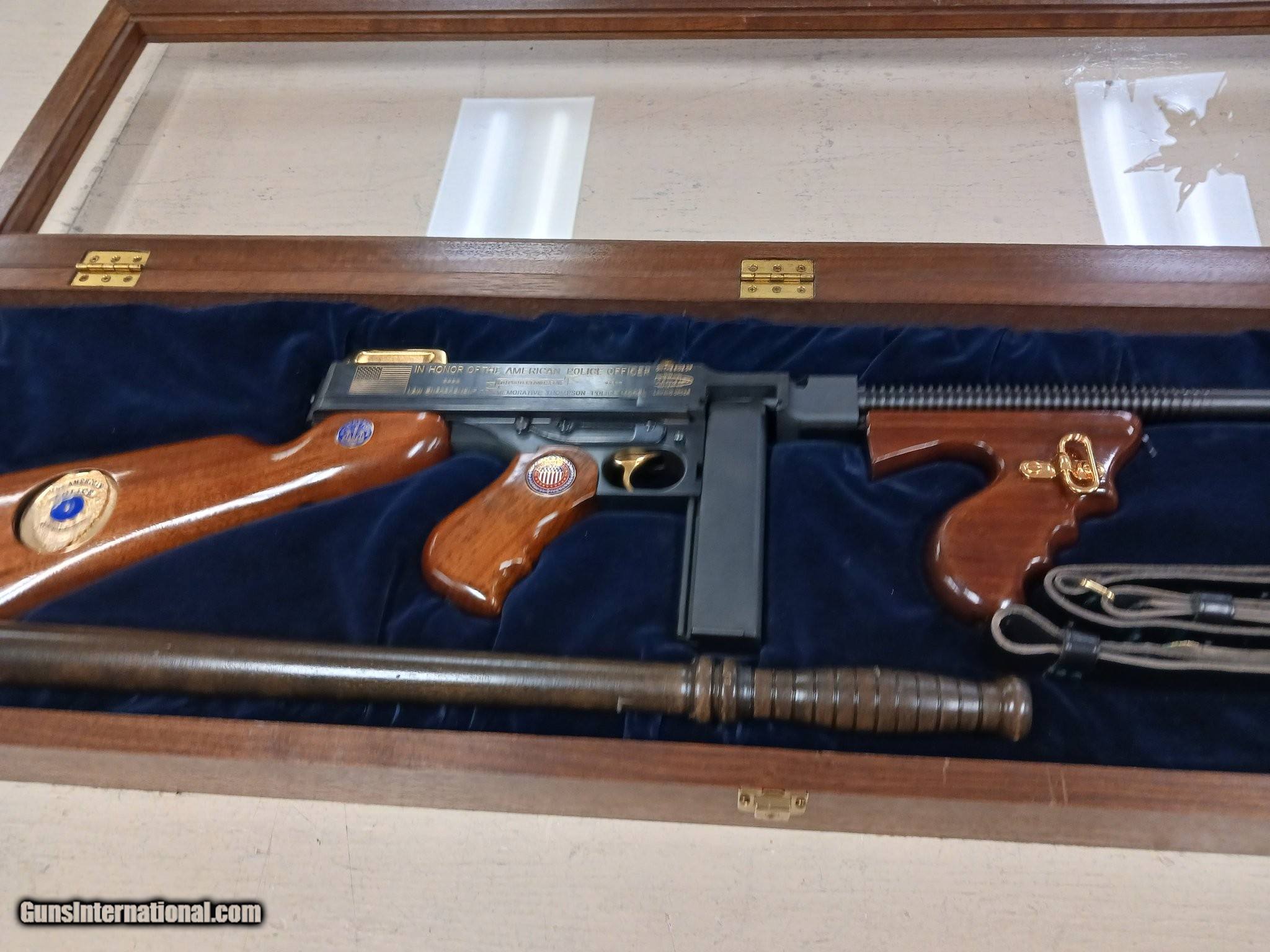 Description: Guns Listing ID: 579040 Museum displayed in the original display box since it was purchased new. Only 1 round ever fired as we needed to verify that it was a working firearm. Includes case, sling and numbers matching night stick. Manufacturer: AUTO-ORDNANCE Model: THOMPSON Caliber Info: .45 ACP Condition: Used - Non-Certified Barrels: 16.5" BARREL Action: SEMI AUTOMATIC Finish: black blued engraved Price: $1,700.99 Contact Seller |