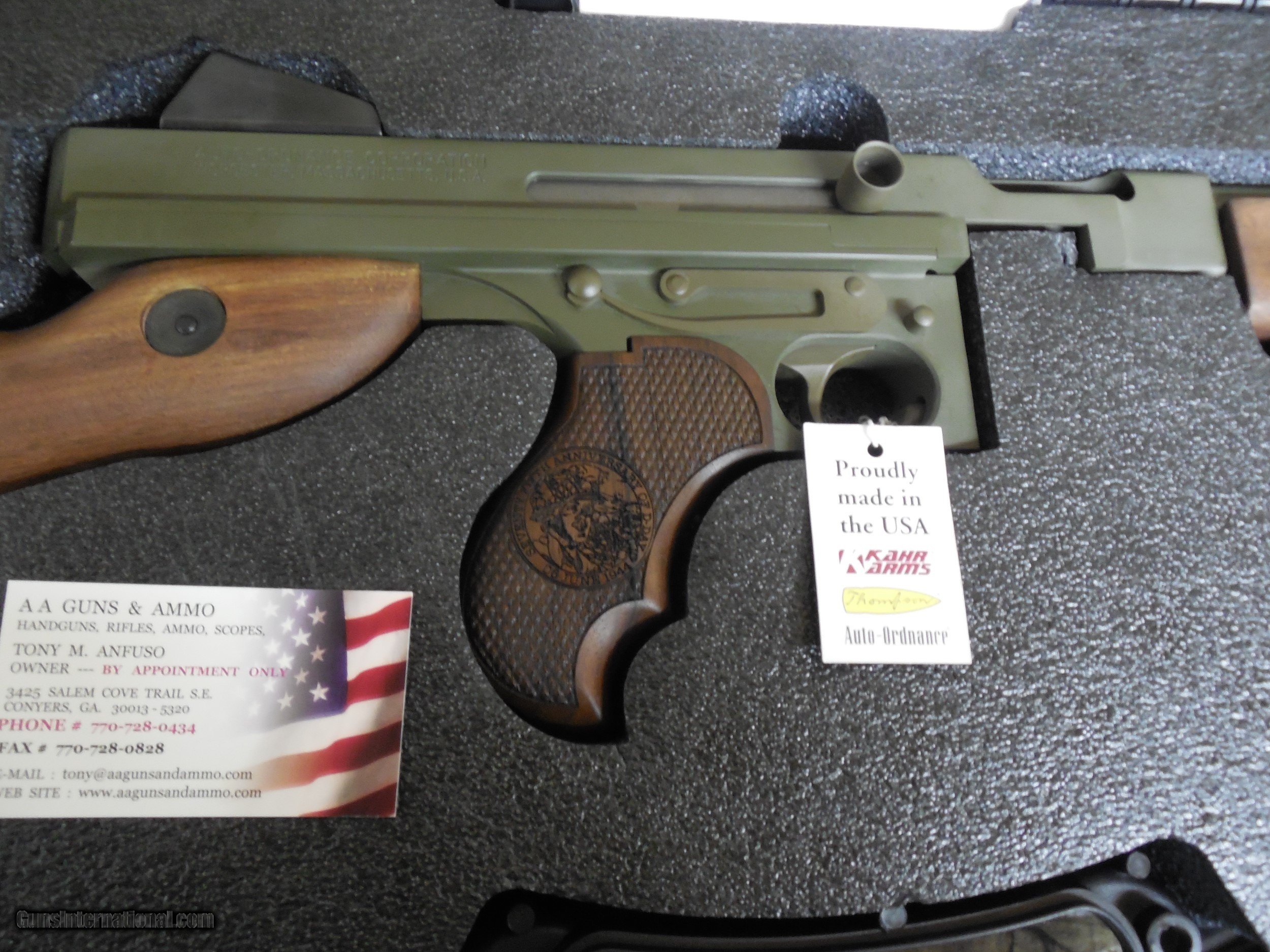 Description: FACTORY NEW IN BOX CLICK ON PICTURES TO ENLARGE Quick Overview THOMPSON 1927A1 D-DAY .45ACP 16.5" 1-30 RD & 1-20 RD STICK MAGAZINE, 3-MAG POUCH, & SLING. Manufacturer AUTO ORDNANCE, Thompson Manufacturer Part Number TM1C2 Item Number GTM1C2 BARREL LENGTH IN INCHES 16.5 CALIBER.45 ACP DETACHABLE MAGAZINE MAGAZINE CAPACITY 1-30 & 1-20 METAL FINISH BLUED OTHER FEATURES: RANGERS ENGRAVE WALNUT FURNITURE WITH UNIT BADGES D-DAY MEDALLION GRIP PATRIOT BROWN & OLIVE GREEN 1-30RD & 1-20RD STICK MAGAZINE OVERALL LENGTH IN INCHES 41 RATE OF TWIST 1:16" SIGHTS STOCK MATERIAL WALNUT SWIVEL STUDS KERR SLING 3 ROUND WWII MAG. POUCH TYPE ACTION SEMI-AUTOMATIC WEIGHT IN POUNDS 13 NO SALE TO CALIFORNIA Dimension 5.25 X 15.40 X 55.05 HEIGHT 5.25 WIDTH 15.4 LENGTH 55.05 STOCK COLOR WOOD METAL COLOR GREEN DISCLAIMER Specifications Subject To Change Without Notice PAYMENTS: WE ACCEPT ARE: Money Orders, Certified Checks, ZELLE (BANK TRANSFERS) MOST BANKS HAVE & IT IS EASY, ALSO TAKE Credit Cards, PERSONAL CHECKS HELD TILL CLEARED. No international shipments Postal Money Orders, Certified Checks, Zelle (Bank Transfers) & Credit Cards Are Preferred and ships the Quickest. The prices of all items listed reflect a 3% earned cash discount when paid with Certified funds, including Cashier's Check & Money Order. Purchases made with credit card do NOT qualify for 3% discount pricing. All Payments made with a credit card will be charged an additional 3%. LAYAWAYS AVAILABLE 30 TO 90 DAYS SHIPPING FOR HAND GUNS $ 25.00 U.S. SALES ONLY SHIPPING FOR LARGE HAND GUNS, RIFLES/SHOTGUNS $ 30.00 U.S. SALES ONLY PLEASE BE SURE THIS GUN IS LEGAL IN YOUR STATE. I WILL SHIP GUN TO YOUR FFL DEALER FOR YOU TO PICK UP & DO A BACKGROUND CHECKS. All firearms must be shipped to a FFL transfer dealer. We ship to the US ONLY. It is your Responsibility to make sure you comply with the laws of your county, state, and city on ALL items. We may sometimes use file photos instead of the actual gun. WHEN E-MAILING ME I WILL REPLY, IF YOU DO NOT SEE A REPLY FROM ME, CHECK YOUR JUNK MAIL, IT MAY GO THERE SOMETIMES. WE HAVE BEEN ON THIS SITE FOR OVER 8 YEARS AND HAD OVER 7,300 ITEMS SOLD. YOU CAN REST EASY WITH US. WE HAVE A PLATINUM RATING & WE ARE ALSO A VERIFIED SELLER WITH GUNS INTERNATIONAL. WE ARE THE HONEST & TRUSTED STORE. BUY WITH CONFIDENCE!!!!, JOIN THE N R A; THE GUN OR AMMO YOU SAVE MIGHT BE THIS ONE!!! THANK YOU AND GOD BLESS OUR TROOPS & AMERICA!!!! By purchasing this Gun you certify that you are at least 21 Years Of Age, live in a state where this purchase is not prohibited & you are not under indictment for, and have not been convicted in any court of a crime punishable by imprisonment for a term exceeding 1 year, you are not a fugitive from justice, are not an unlawful user of or addicted to any controlled substance, have not been adjudicated as a mental defective nor have you been committed to any mental institution and you are not an alien Illegally or unlawfully in the United States. SEE ALL OF AA GUNS & AMMO’S ITEMS AT aagunsandammo (GUNS, AMMO, HOLSTERS, SCOPES, RED DOTS, MAG LOADERS, EXTRA MAGAZINES, BAYONETS & MUCH MORE, NEW STUFF ALWAYS COMING IN. A gun is like a parachute. If you need one, and don't have one, you'll probably never need one again!!! SOLD Manufacturer: AUTO ORDNANCE, THOMPSON Model: 1927A1 D-DAY COMMEMORATIVE Serial Number: LAYAWAYS AVAILABLE 30 DAYS - 90 DAYS Caliber Info: 45 Automatic Colt Pistol (ACP) Bore: RATE OF TWIST 1:16 Chambers: 1-30 & 1-20 RD.MAGAZINE Condition: NEW IN BOX Metal Condition: NEW IN BOX Wood Condition: NEW IN BOX Bore Condition: NEW IN BOX Barrels: 16.5 Barrel Type: STEEL Action: Semi-Automatic Triggers: STANDARD Stock: MATERIAL WALNUT Stock Comb: RANGERS ENGRAVE WALNUT Finish: O.D GREEN STEEL Weight: 13 LBS. Sights: PEEP HOLE Engraving: RANGERS ENGRAVE WALNUT Extras: SLING & 3-MAG WWII POUCH Case: HARD THOMPSON PLASTIC CASE Item Location: GRORGIA Proof:Nitro: FACTORY NEW IN BOX Proof:Black: RANGERS ENGRAVE WALNUT FURNITURE WITH UNIT BADGES D-DAY MEDALLION GRIP PATRIOT |