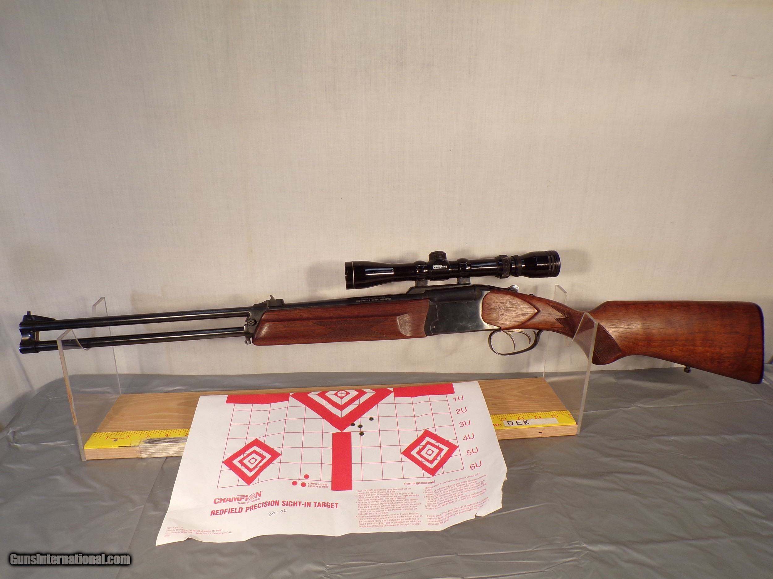 Description: A well regulated over and under double rifle in a useful caliber for a modest price. A sound gun, locks up tight and in very nice condition. 23 1/2 inch barrels, 9 pounds 2 ounces with scope. Tasco 3x9 scope. Targe with rifle shows how well this rifle is regulated. This is not common. There is a way provided to regulate this gun, but it looks like someone has already done a good job at it. Overall condition is very good. FFL required and $50.00 shipping and insurance. SOLD |