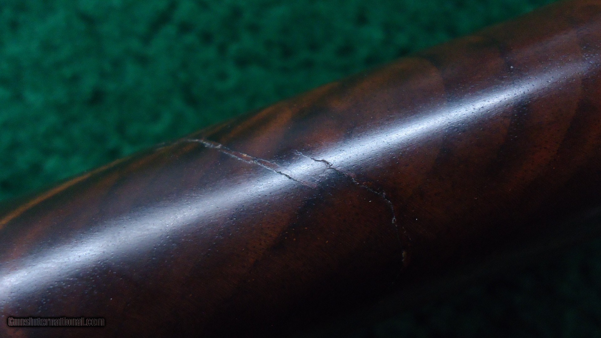 Description: 29-3/4 inch extra heavy octagon barrel measures over an inch at the muzzle and is marked J. Stevens A. & T. CO.. Excellent bore is bright and shiny with strong rifling. Mounting blocks in place for your choice of scopes with no accommodations for open sights. Engraved receiver shows vibrant case hardening colors. Extra fancy checkered walnut stocks with Schnabel forearm fit with a palm rest. Straight grip butt stock features a high profile cheek rest. Schoyen style butt plate shows a deep rich butterscotch patina. Gun overall appears quite fresh and is likely unused since completion. Leroy Merz Antique Firearms specializes in antique and vintage Winchesters and other fine American firearms. Since 1965 Mr. Merz has taken part in the world of firearms and has been a contributor to many well known reference books. We have hundreds of additional guns in every price range at our home online. Search for Merz Antiques in google. SOLD Antique: Yes Rifle Caliber: .32-40 Winchester |