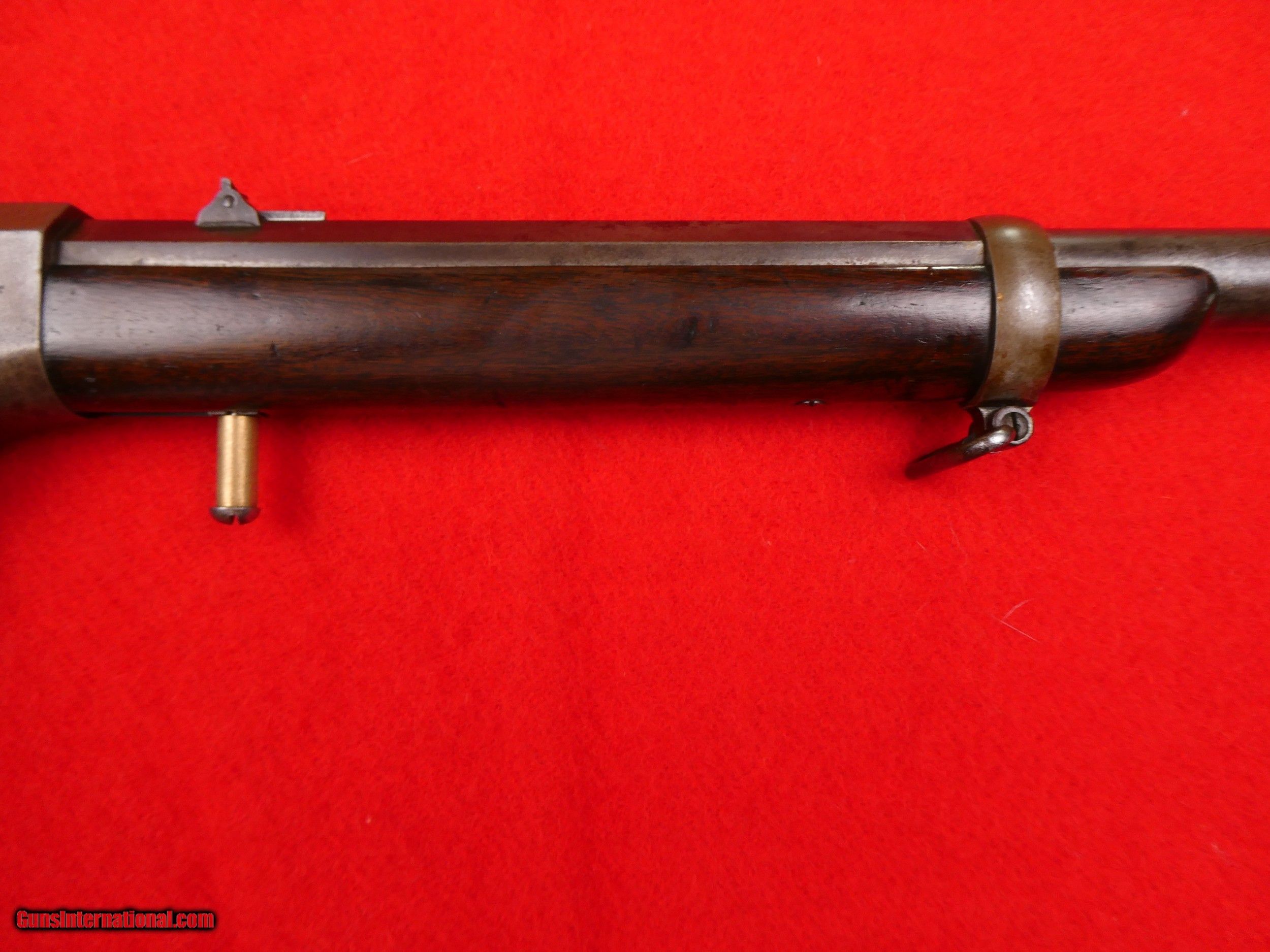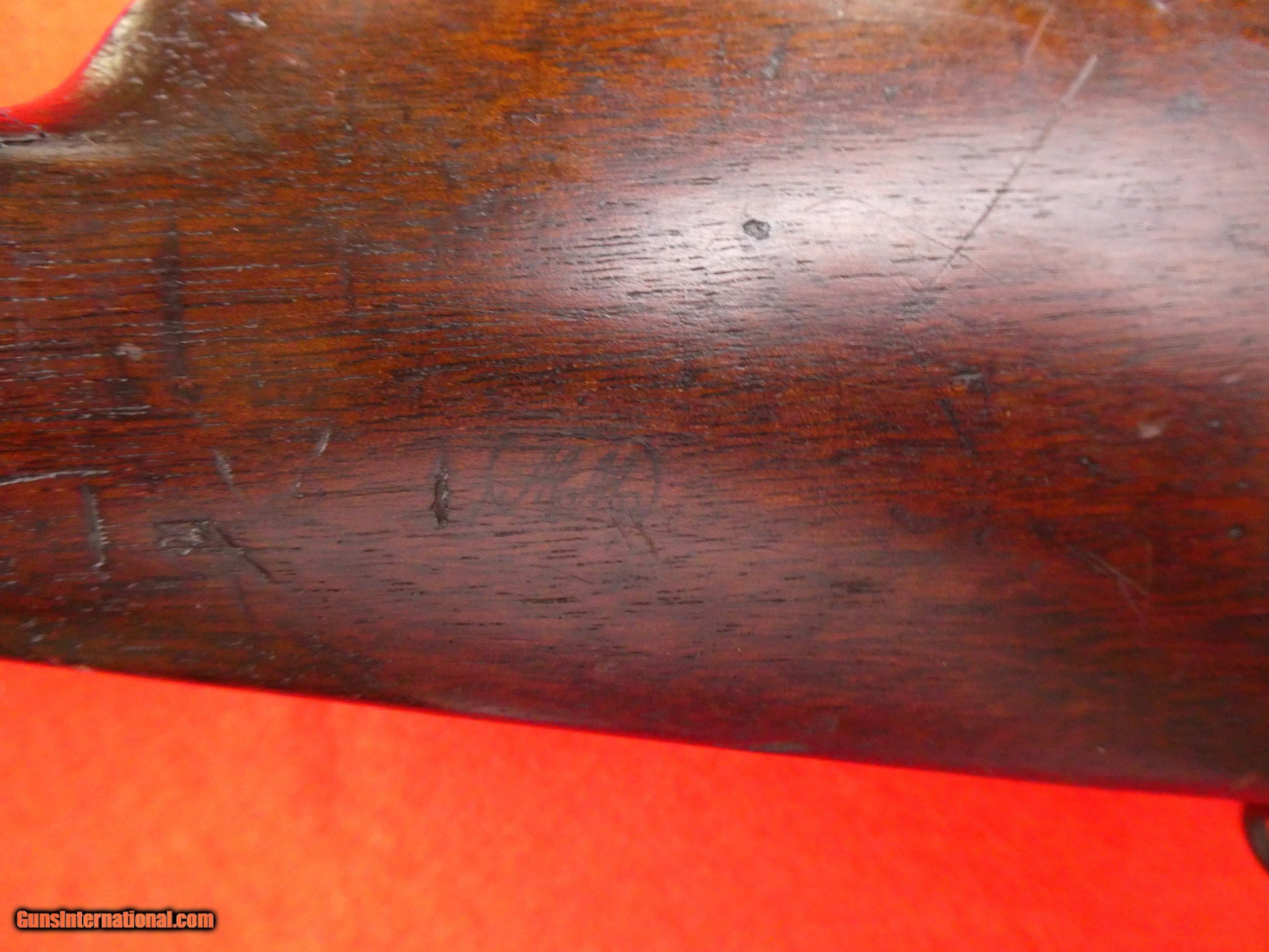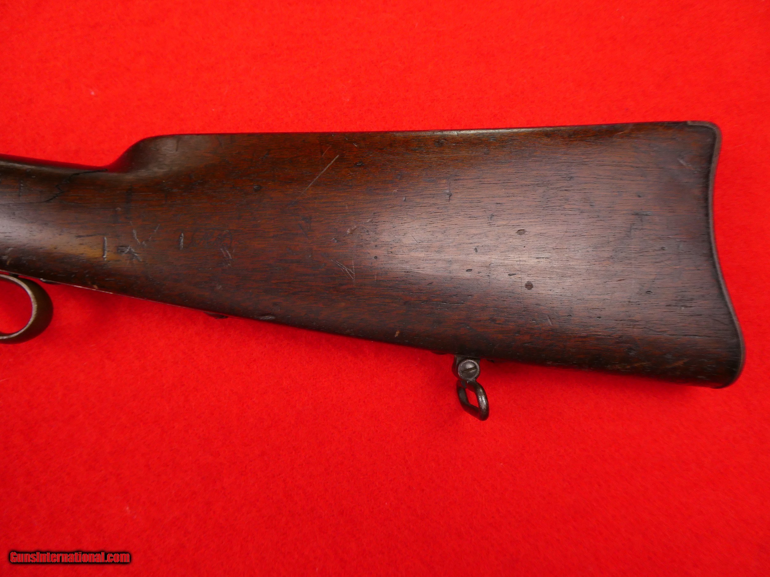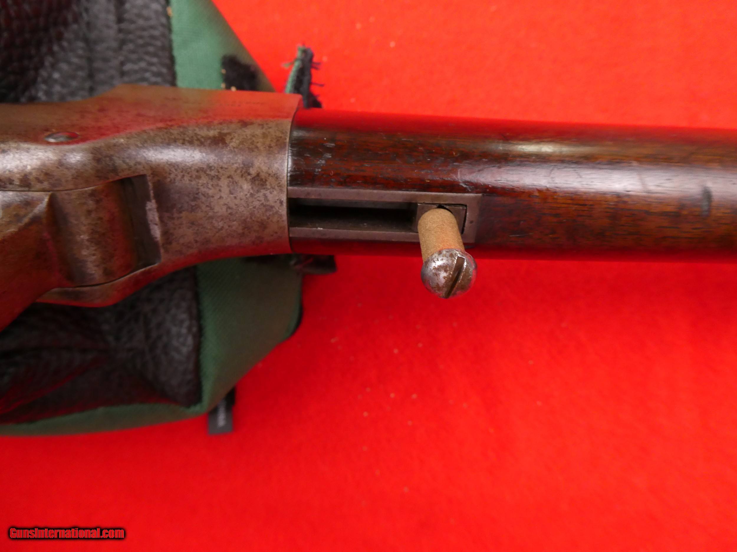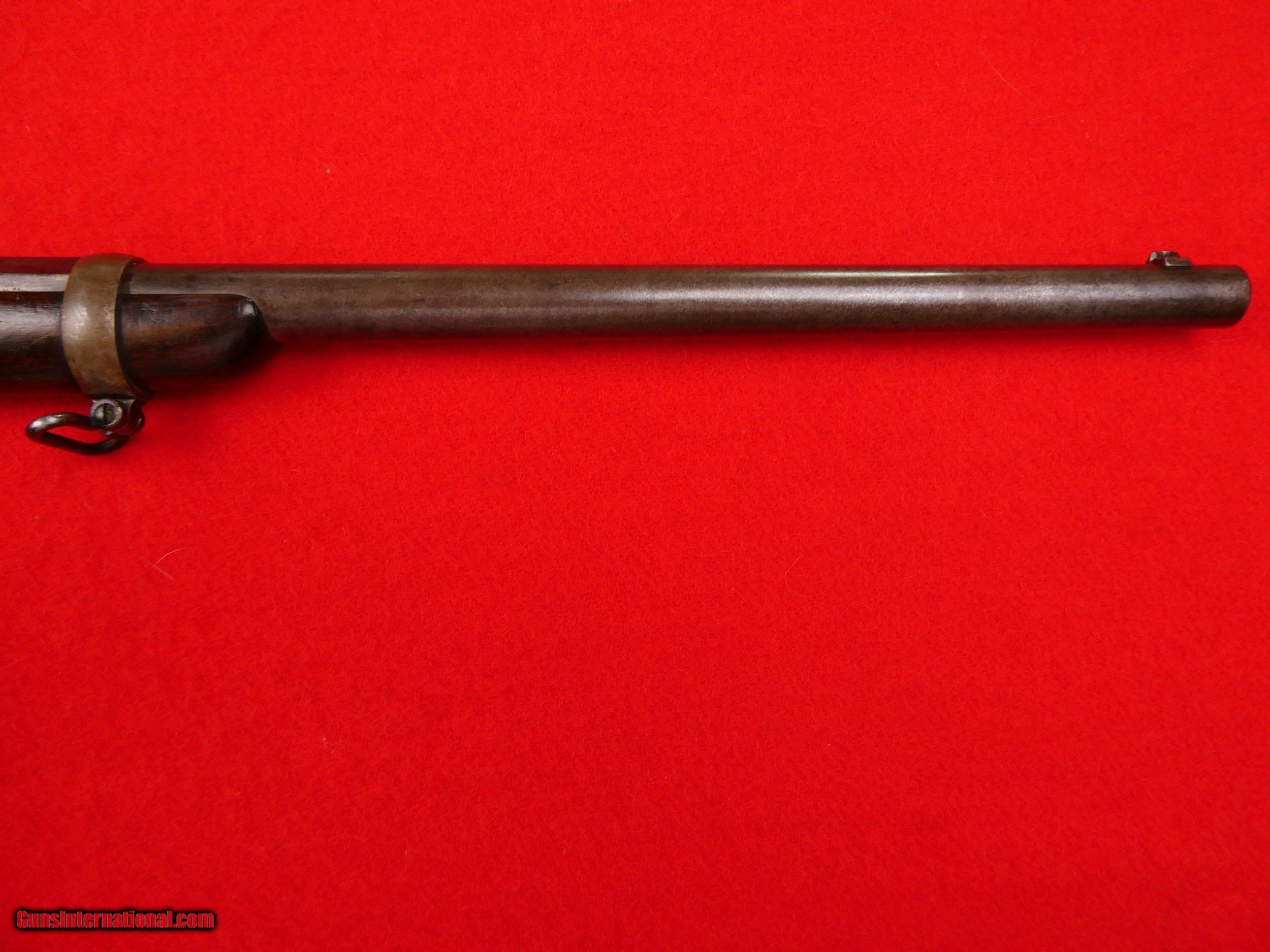 Description: ***SOLD*** Ball & Williams Ballard 1861 Carbine .44 rimfire. Ser # 9903, Merwin & Bray Agents New York, Ballards Patent Nov. 5. 1861, Ball & Williams, Worester, Mass. MM inspection marks and numbers all match, Cartouche Stamped MM very faint, ( MM- Milton Morris) Scarce Government Inspector Mark. Octagon to round barrel, Nice rifling and bore, Front sight has some damage, Rear sight is a two leaf variety with 100 yd- 250 yd- 500 yd, Original sling swivels, Small crack in stock at wrist, Features a spring loaded manual shell ejector, The lever is a replacement but looks and function very nice, Rifle appears to be all original except for this. Overall very nice original condition military issued carbine. Layaway Available No Text; Call 269-358-1027 or 269-489-5109 or email only; PERSONAL PROPERTY of David Walters; $1995.00 plus $50.00 shipping. SOLD |