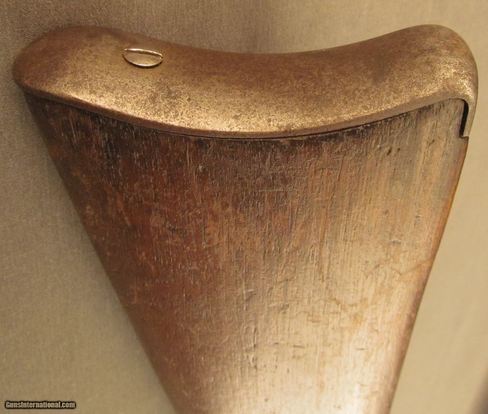 Description: Serial #2885, .44 RF, 22" barrel with a very good bore that has some light - moderate pitting. This early Ballard has an overall pewter gray patina on the frame with scattered spots of small freckling and pinprick pitting. The manufacturer markings are faint but still fairly legible on the receiver top flat. The barrel has a darker plum-brown patina with some gray fading at the muzzle as do the other pieces of metal furniture with the exception of the hammer which has a rather nice later added fire blue finish. The walnut stock and forend are in good shape with numerous small handling blemishes and bruises throughout as well as some with-the-grain cracks where the forend meets the frame and on the wrist. The action still has firm lock-up and is fully functional. This is a very good plus example of a Civil War era Ballard overall. Antique SOLD Antique: Yes Manufacturer: Ballard Model: Carbine Serial Number: 2885 Caliber Info: .44RF Gauge Info: .44RF |