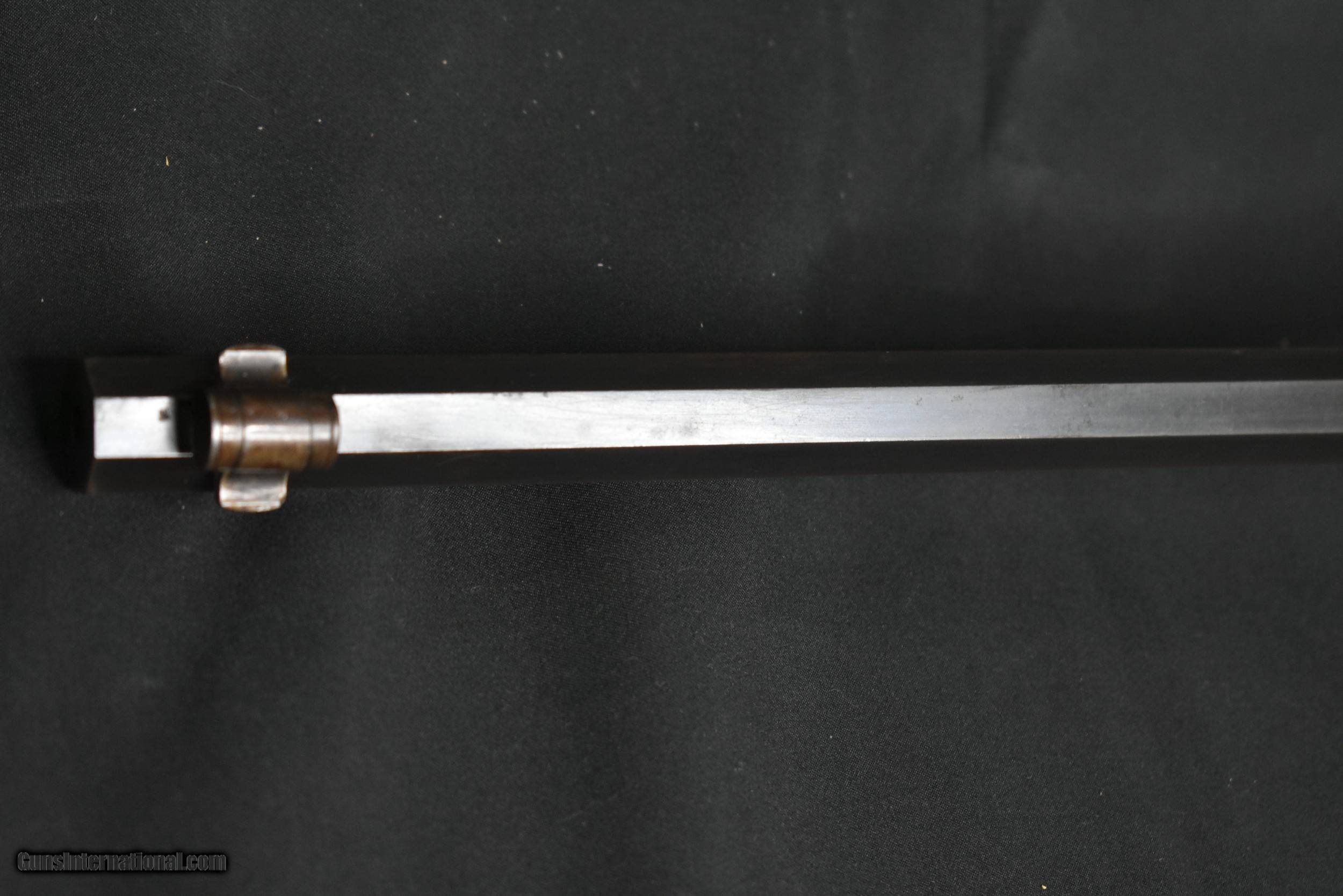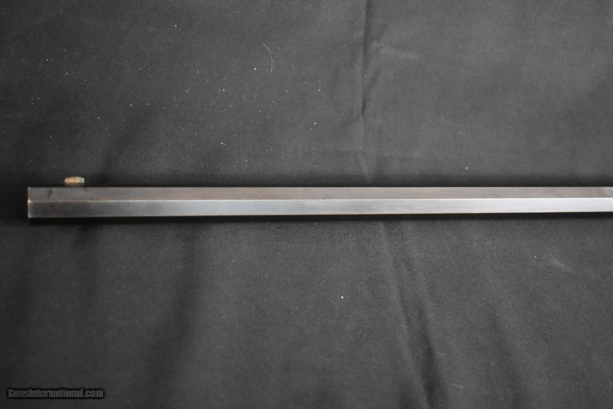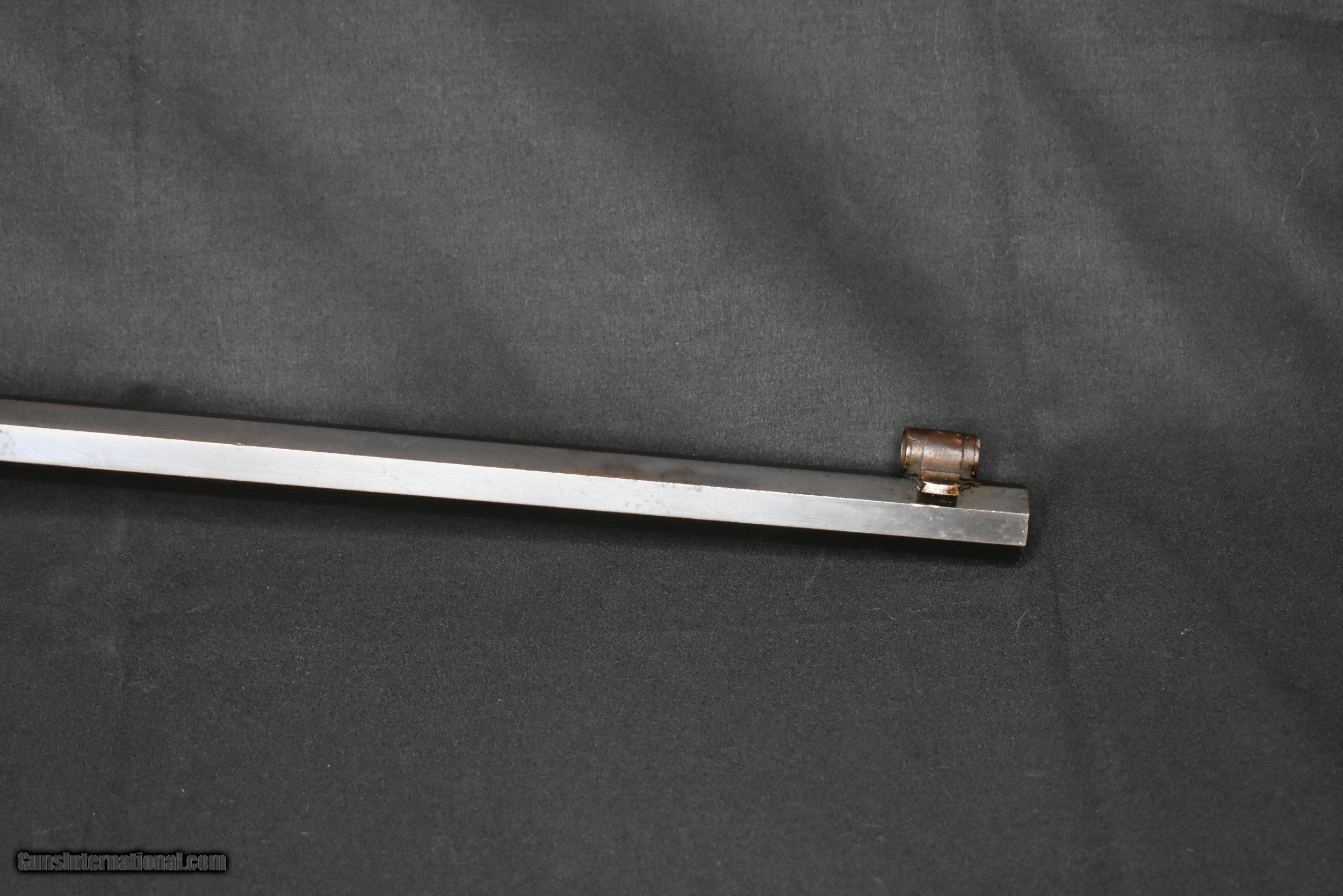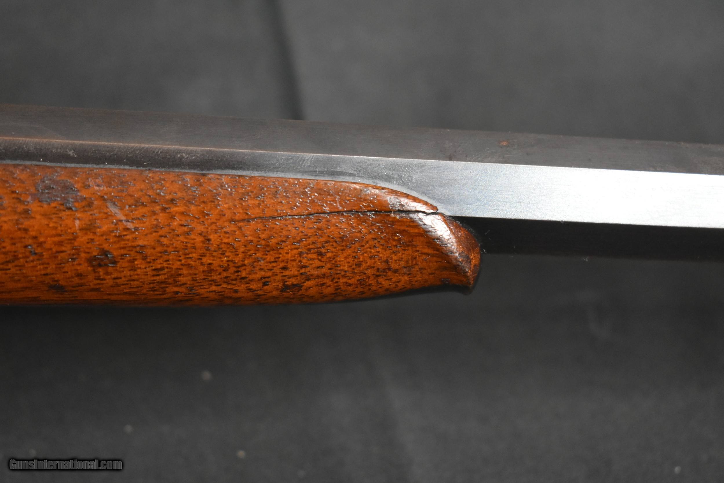 Description: This is a very nice little JM Marlin Ballard. It is marked J,M, Marlin New Haven Conn. U.S.A. Chambered in .22 Long. Patented February 9 1875. Ballard's' Patent Nov 5 1861. These rifles were manufactured between 1875-1891 Making thius an antique. This particular one has a low serial Number 4151 Im estimating it to be manufactured in 1881. Barrel is estimated to be 80% blue with some spots of light corrosion as expected for a rifle this old. The receiver has a nice brown patina. It has a Vernier sight and a v notch sight in the rear and a hooded fine post with a dot on the front for a front sight. It has a nice shinny bore remarkable for its age. The wood is in very good condition and is flush with the metal leading me to believe it has not been refinished. the forend has a small crack on the tip on the right side and has a triangular ebony tip inlay. Maine residents add 5.5% Sales Tax Free Shipping no Credit Card Fees SOLD Manufacturer: J.M Marlin Ballard Model: Ballard Serial Number: 4151 Barrel Length: 26 Condition: Very Good Metal Condition: Very Good Wood Condition: Very Good Bore Condition: Very Good Action: Single Shot Falling Block Finish: Blued Manufacture Date: 1881 est. Item Location: Buxton Maine |