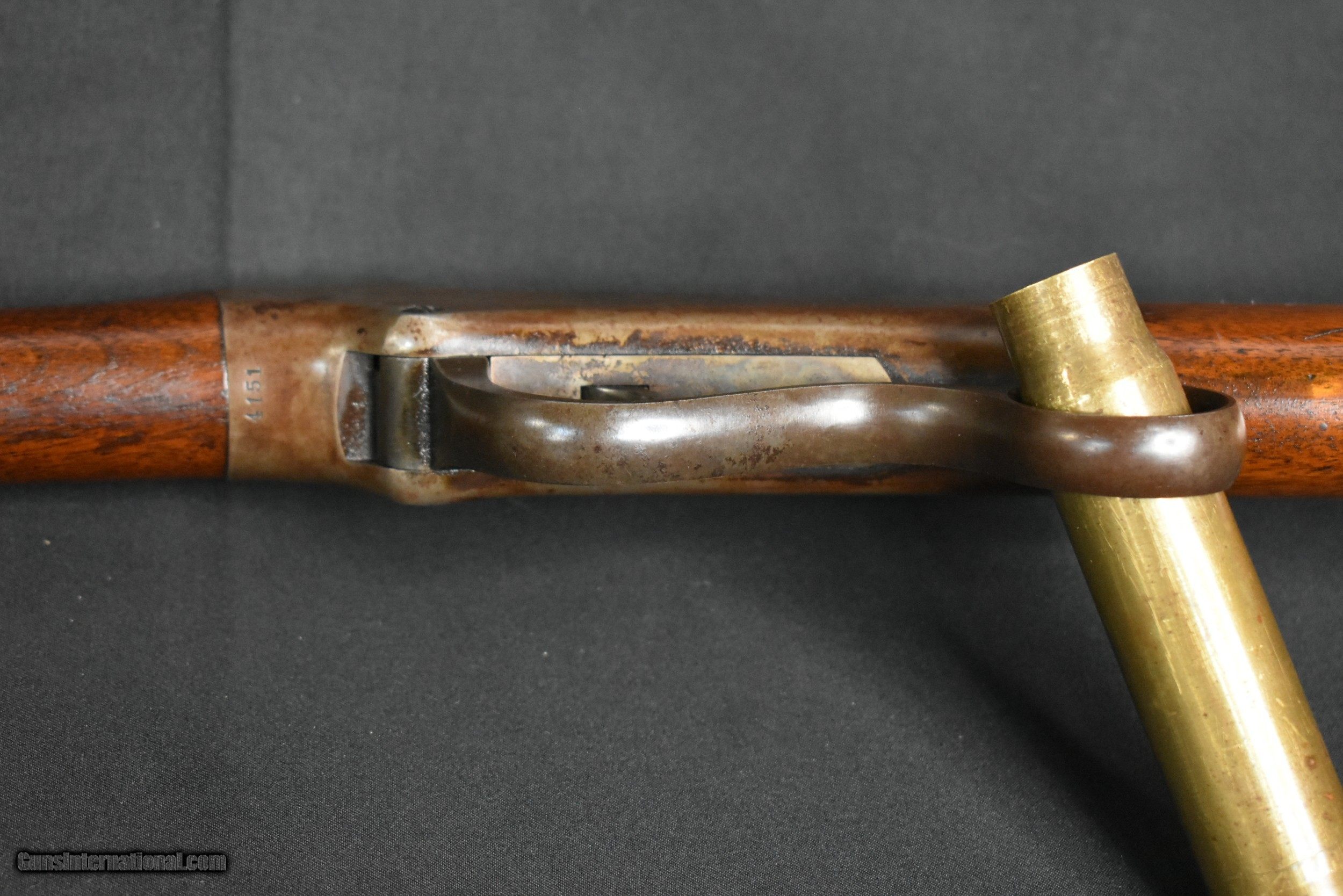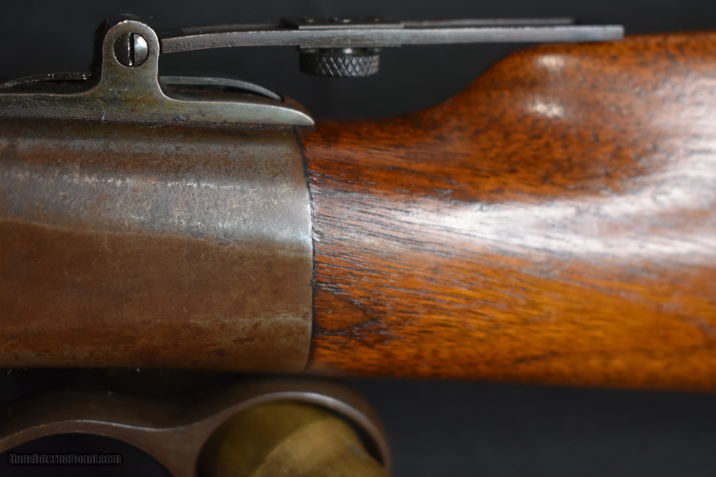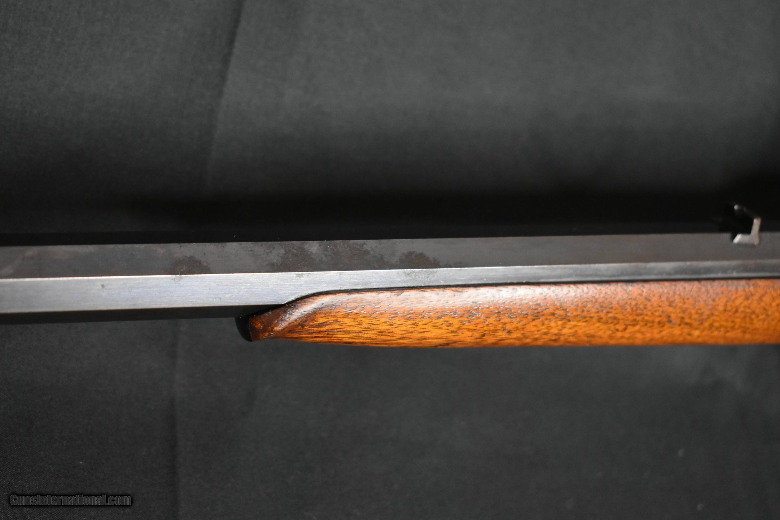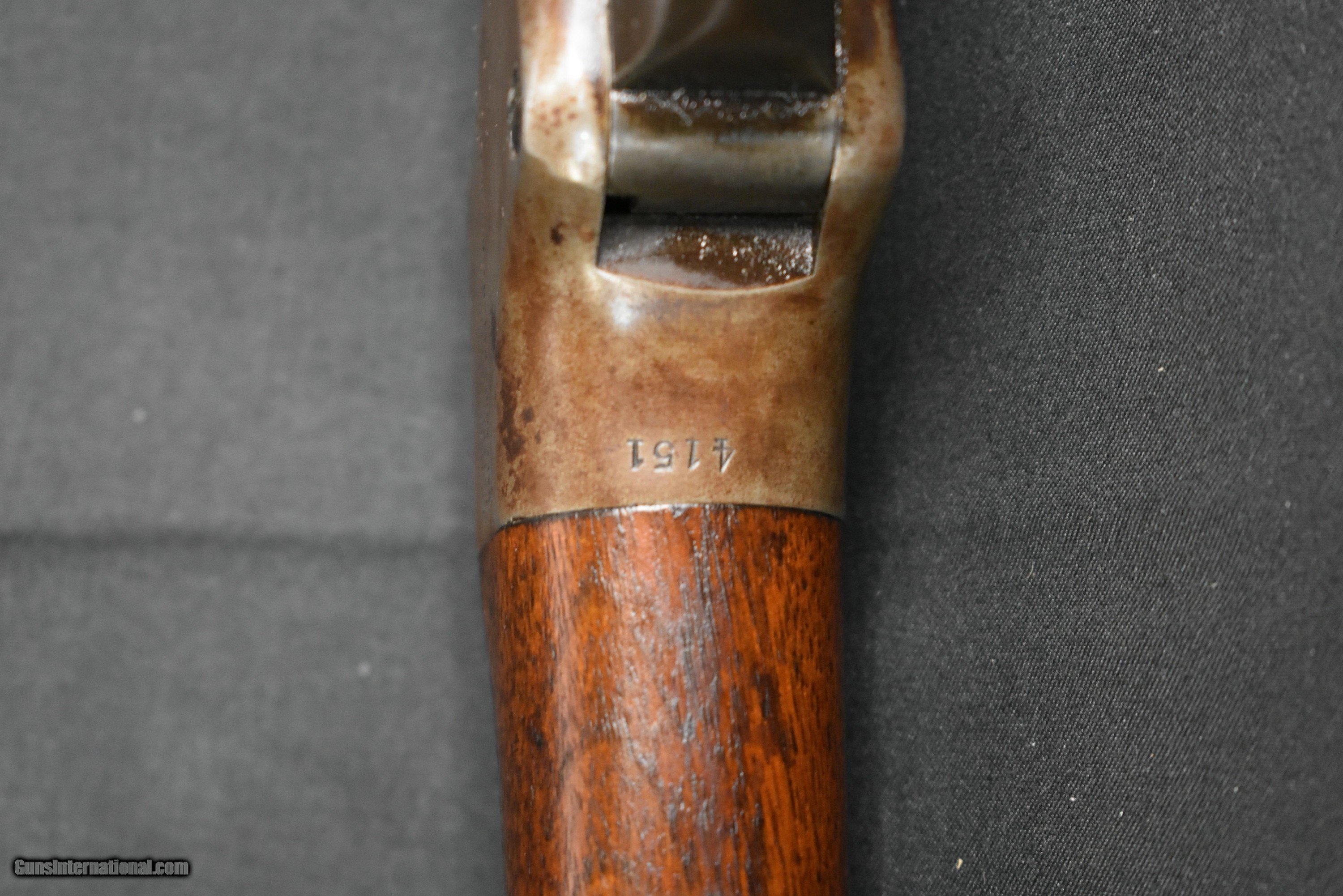 Description: This is a very nice little JM Marlin Ballard. It is marked J,M, Marlin New Haven Conn. U.S.A. Chambered in .22 Long. Patented February 9 1875. Ballard's' Patent Nov 5 1861. These rifles were manufactured between 1875-1891 Making thius an antique. This particular one has a low serial Number 4151 Im estimating it to be manufactured in 1881. Barrel is estimated to be 80% blue with some spots of light corrosion as expected for a rifle this old. The receiver has a nice brown patina. It has a Vernier sight and a v notch sight in the rear and a hooded fine post with a dot on the front for a front sight. It has a nice shinny bore remarkable for its age. The wood is in very good condition and is flush with the metal leading me to believe it has not been refinished. the forend has a small crack on the tip on the right side and has a triangular ebony tip inlay. Maine residents add 5.5% Sales Tax Free Shipping no Credit Card Fees SOLD Manufacturer: J.M Marlin Ballard Model: Ballard Serial Number: 4151 Barrel Length: 26 Condition: Very Good Metal Condition: Very Good Wood Condition: Very Good Bore Condition: Very Good Action: Single Shot Falling Block Finish: Blued Manufacture Date: 1881 est. Item Location: Buxton Maine |