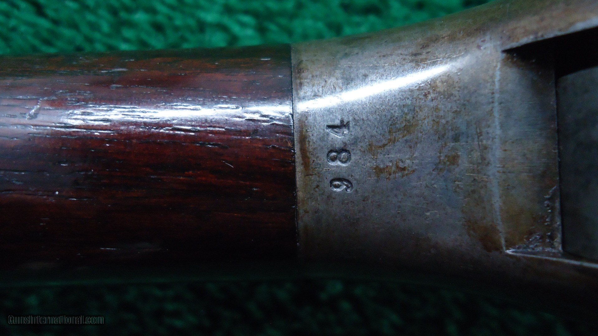 Description: 30 inch octagon mid-weight barrel is about equivalent to a Winchester #3 barrel. Barrel shows a good deal of original finish starting to tone brown with scattered light freckling and slight thinning on the corners. Bore is bright and shiny with decent rifling showing just a few small ares of scattered light pitting. Sights include a globe front, a Rocky Mountain sporting rear and a graduated folding peep sight behind the hammer. The Ballard No. 4 “Perfection” rifles were made with Norway Iron forged frames for High-Power cartridges. This one shows somewhat faded color case hardening appearing more vivid in protected areas. Walnut stocks are clean and solid showing minimal wear and handling marks. Features a crescent steel butt plate. Leroy Merz Antique Firearms specializes in antique and vintage Winchesters and other fine American firearms. Since 1965 Mr. Merz has taken part in the world of firearms and has been a contributor to many well known reference books. We have hundreds of additional guns in every price range at our home online. Search for Merz Antiques in google. SOLD Antique: Yes Rifle Caliber: .40 |