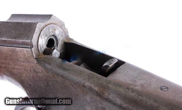 Description: This is a scarce Ballard single shot .22 caliber rifle manufactured by the Marlin Firearms Co. is 41.5" long and features a lever actuated falling block action and open sights on a rifled octagon barrel with solid walnut hardwood stocks. The receiver markings are complete and readable: "Marlin Fire Arms Co. New Haven Ct. U.S.A. / Patented February 9, 1875 / Ballard's Patent Nov 5, 1861". . Serial number is 31xxx. Only $950 plus insured shipping. NO FFL Comments on condition: The information stamped on the reciver is completely visisble and readable. The receiver and buttplate retain faint case colors - the barrel bluing shows patina and the finish is almost entirely present. I would rate this antique rifle at 50%. More information follows, all copied directly from the Marlin Firearm ... BALLARD RIFLES John M. Marlin started manufacturing the Ballard rifle in 1875 and it remained in production until about 1890. During the Civil War, the U.S. purchased over 1,000 Ballard carbines. Government tests in 1866 indicated the Ballard could be fired at the rate of 18 times a minute. All Ballards prior to Marlin's production were for use only with rim-fire ammunition. Marlin-manufactured Ballard had both numerical and noun model designations. The numbers used were from 1 to 10, with fractions, such as 1 1/2, to identify some variations. It appears that not long after John Marlin got into full production of the Ballard, different combinations of the available features could be specially ordered. As a result, there are many fine Ballards that do not fit any category, ad description, or model number precisely. Among the various standard models can be found at least four types of barrels, three types of receivers, three different types of extractors, eight different levers, three different triggers, two types of hammers, four different-shaped butt plates, four variations of buttstocks, three types of breech blocks, and numerous types of front and rear sights. The forestocks made by J.M. Marlin and The Marlin Fire Arms Company had a schnabel front end and were of at least three different shapes. Throughout the years of production, Ballard's were available in a wide range of calibers. From the familiar .22 short cartridge to the 50 - 70 Govt., the Ballard could fit any shooting situation. SOLD Antique: Yes |