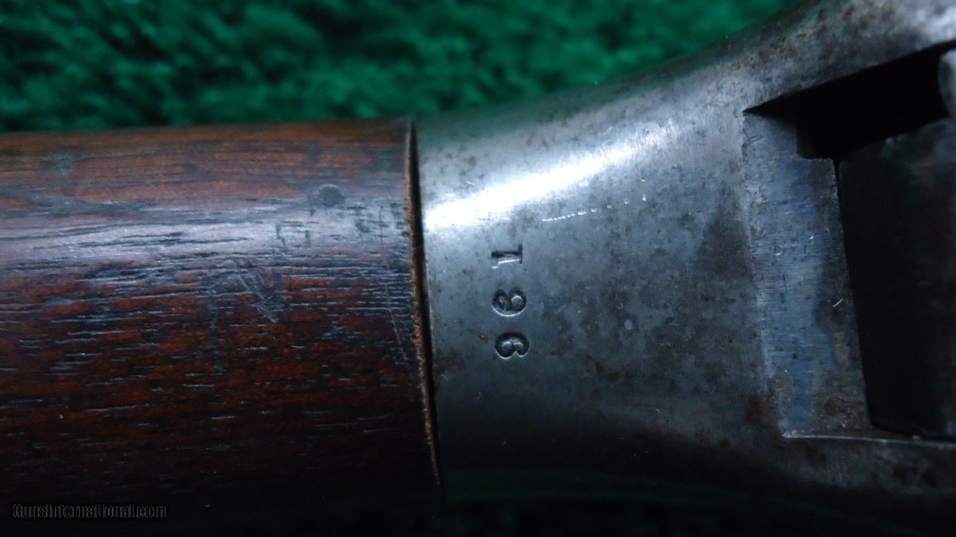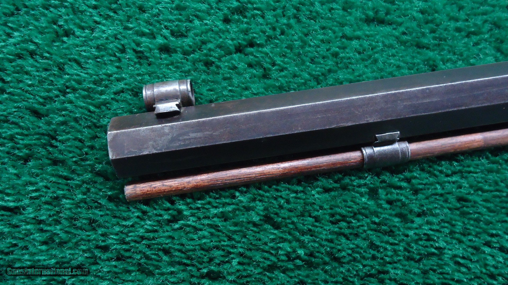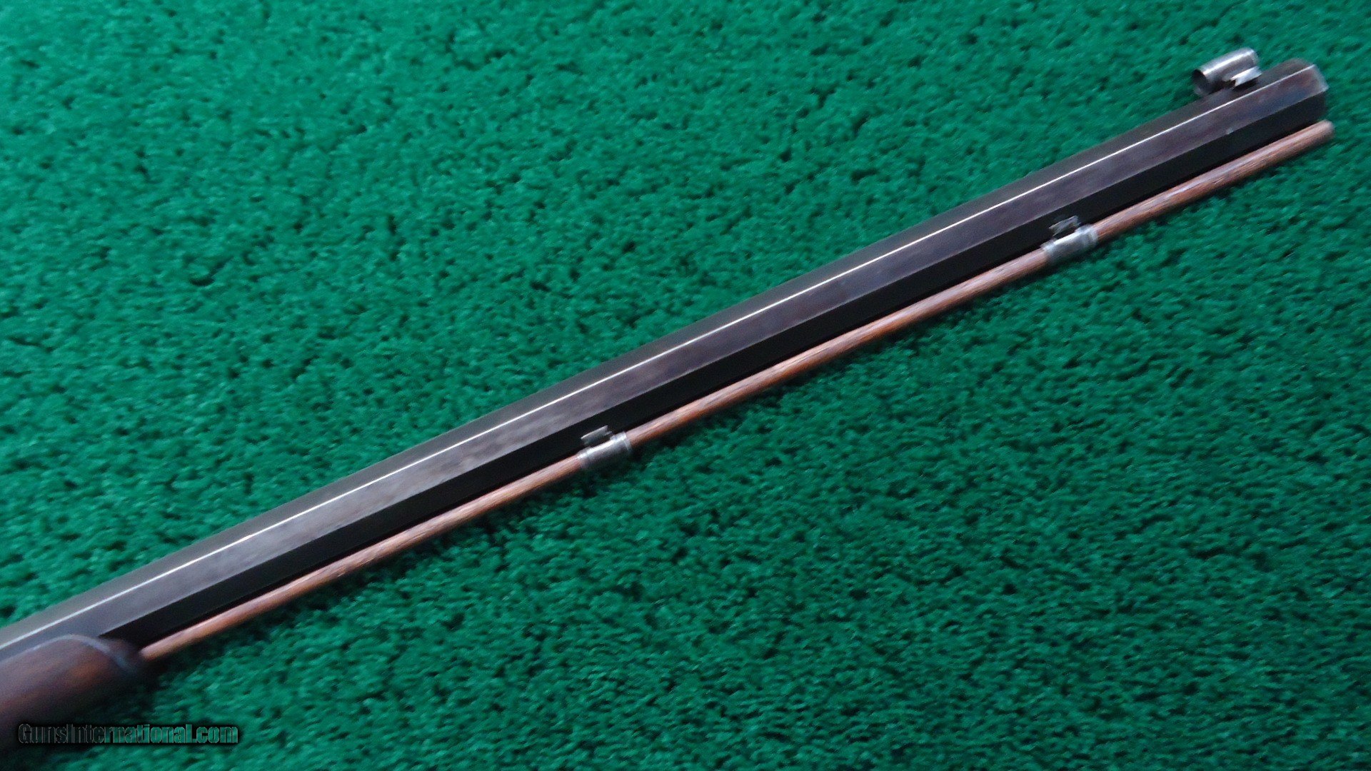 Description: 30 inch octagon barrel with ram rod underneath. Good bore with lots of shine. Wood is in very good condition with a sliver missing from the left side of the forearm about 3 inches long by 1/8 inch wide. Could be easily replaced. Globe front sight and folding tang sight. Double set Schuetzen triggers. Correct rifle style buttplate. Barrel has about 50% blue/brown color. Receiver is a nickel color with visible traces of case color. Not a bad old Ballard. Leroy Merz Antique Firearms specializes in antique and vintage Winchesters and other fine American firearms. Since 1965 Mr. Merz has taken part in the world of firearms and has been a contributor to many well known reference books. We have hundreds of additional guns in every price range at our home online. Search for Merz Antiques in google. SOLD Antique: Yes |