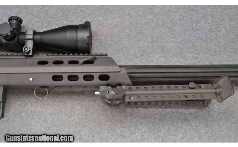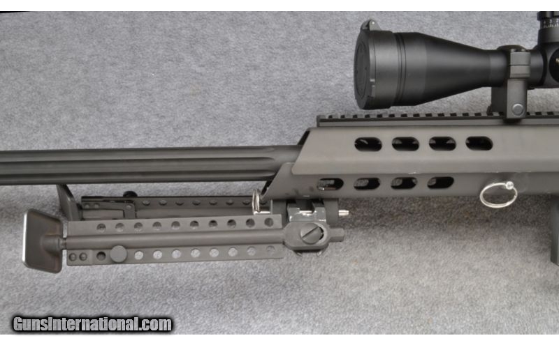 Description: Excellent throughout showing only light use. Complete with Leupold optic. No box. Extra shipping required. SOLD Manufacturer: S/N AB0004XX Caliber Info: .50 BMG Metal Condition: Excellent Bore Condition: Excellent Barrels: 30" Fluted Triggers: Factory Stock Dimensions: Black Metal with Hogue Black Rubber Grips Fore End: Vented Steel Butt Pad: Black Rubber Weight: 26 1/2 LB Sights: Leupold 4.5x-14x Long Range Tactical Optic Item Location: Wheeling, WV |
