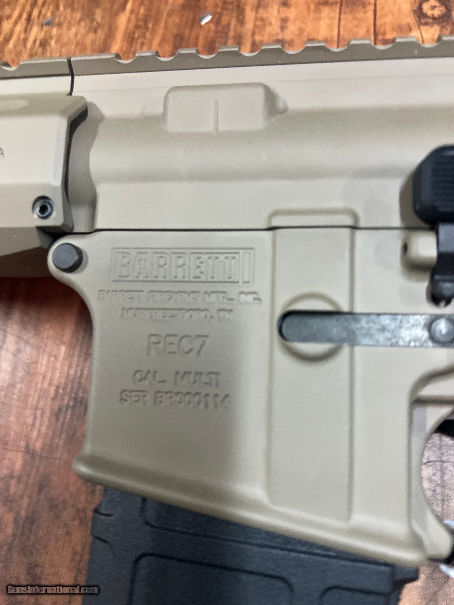 Description: Guns Listing ID: 558592 Barret Rec7 One mag 5:56 SOLD Manufacturer: BARRETT Model: REC7 Caliber Info: 5.56X45MM NATO Condition: Used - Non-Certified Barrels: 18 BARREL Action: SEMI AUTOMATIC Finish: NOT SPECIFIED |