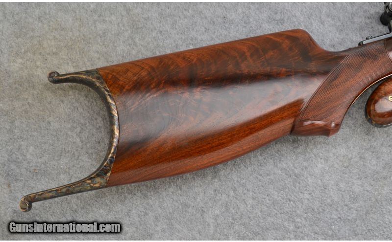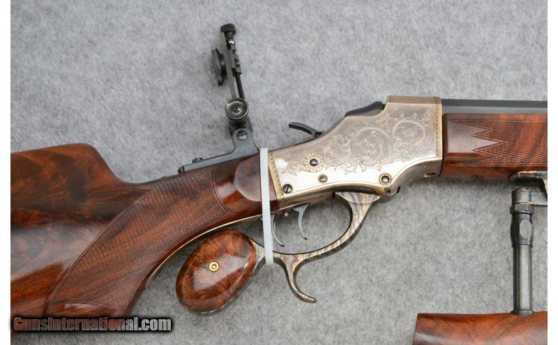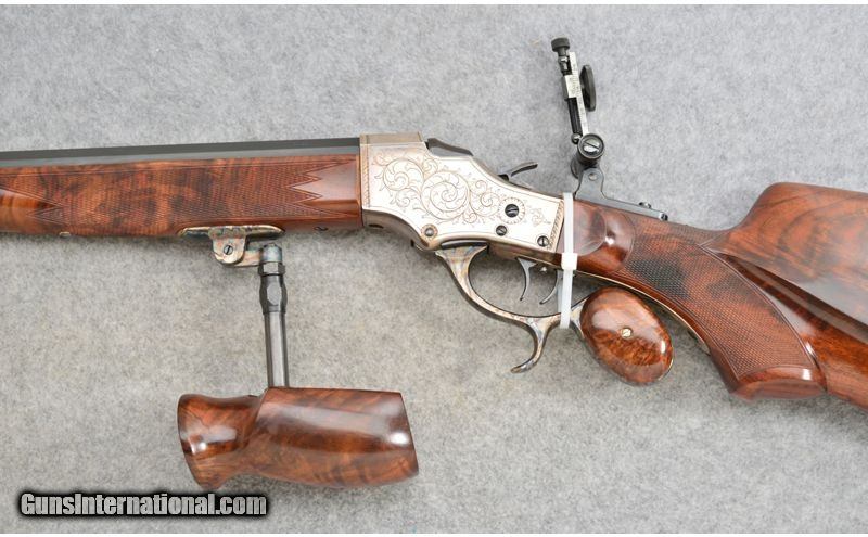 Description: Excellent condition overall. Two barrel set 38-55 Winchester and .25-20 Winchester Center Fire. Silver Plated Engraved Frame. .38-55 Winchester SOLD Metal Condition: Excellent Wood Condition: Excellent Barrels: 28" Number 2 Blued Steel Octagon to Round Barrels Triggers: Double Set Triggers Stock Dimensions: LOP: 13 1/2 Fore End: Checkered Walnut Fore Arm with Schnabel Tip and Palm Rest Butt Pad: Color Case Hardened Schuetzen Two Prong Butt Plate Sights: Soule Style Aperature Tang Sight with a Globe Style Front Sight Item Location: Hamburg, PA |