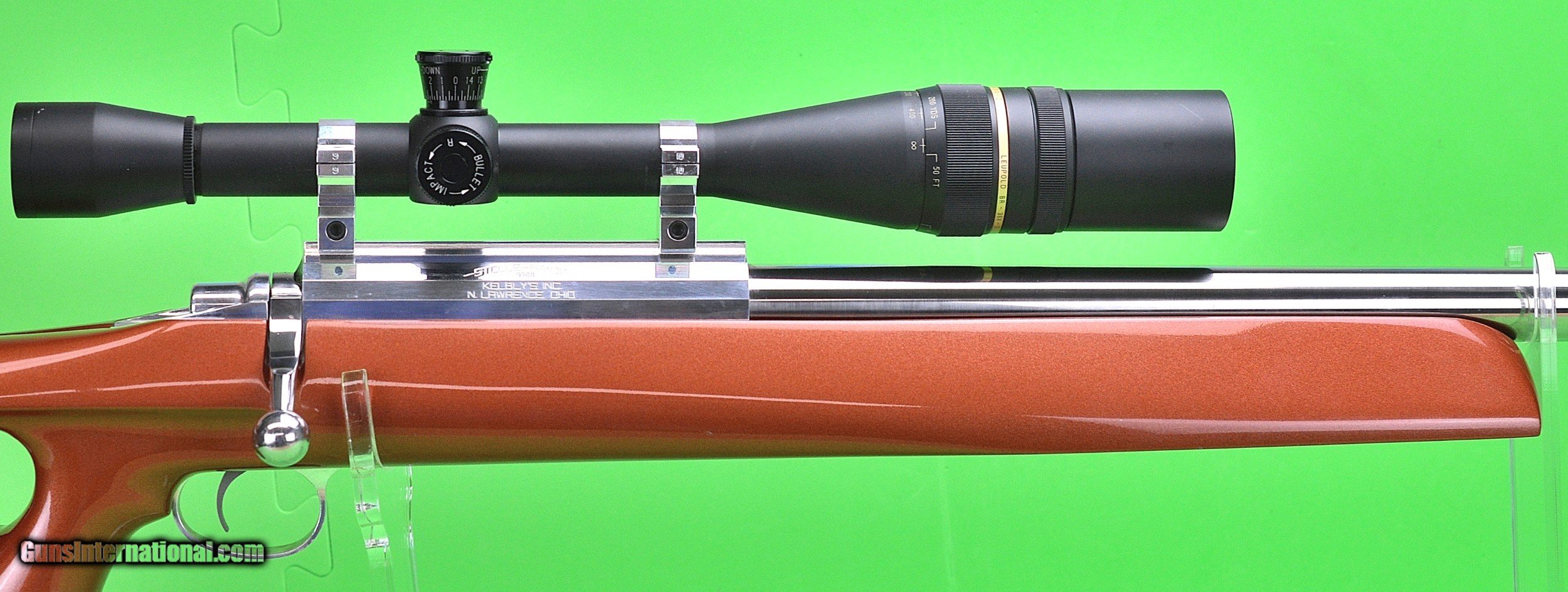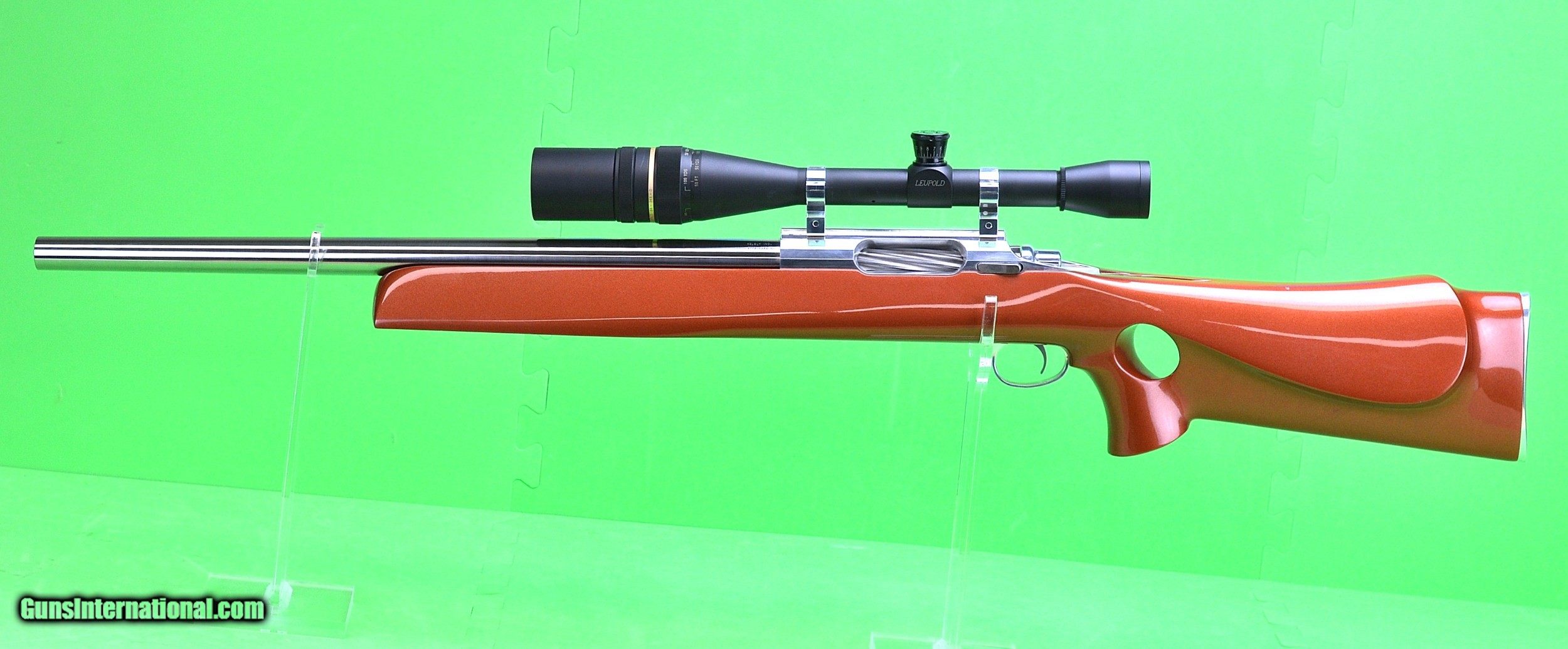 Description: Kelbly, Inc. built Stolle-Panda 6 PCC benchrest target rifle. 21” Keleby-Hart heavy barrel with 1/14 twist. 6 oz. Kelbly Jewel trigger. Kelbly synthetic thumbhole stock finished in 1968 Corvette Burnt Orange. High polished action, trigger guard and butt plate. 12 ½” LOP. 95%plus cosmetically and mechanically. Leupold BR-36X-D scope. Heavy duty aluminum rifle case. Plus compartmentalized accessory box with cleaning rod, jag, patches, brushes, oil, solvent etc. plus 35 loaded rounds of 6PCC ammunition. 120 rounds of 6PPC brass. 80 Berger 68 gr. match grade 6mm bullet. 30 Rossing’s 6mm 68 gr. match grade target bullets. Re-loading dies etc. Please look closely at all of the photos Buyer pays actual ground shipping SOLD Rifle Caliber: 6mm PPC Manufacturer: Kelbly Built Condition: 95% Metal Condition: 95% Barrel Type: Keleby-Hart heavy barrel Triggers: Kelbly Jewel Trigger Stock: Kelbly Synthetic Thumbhole Stock LOP: 12 1/2 |