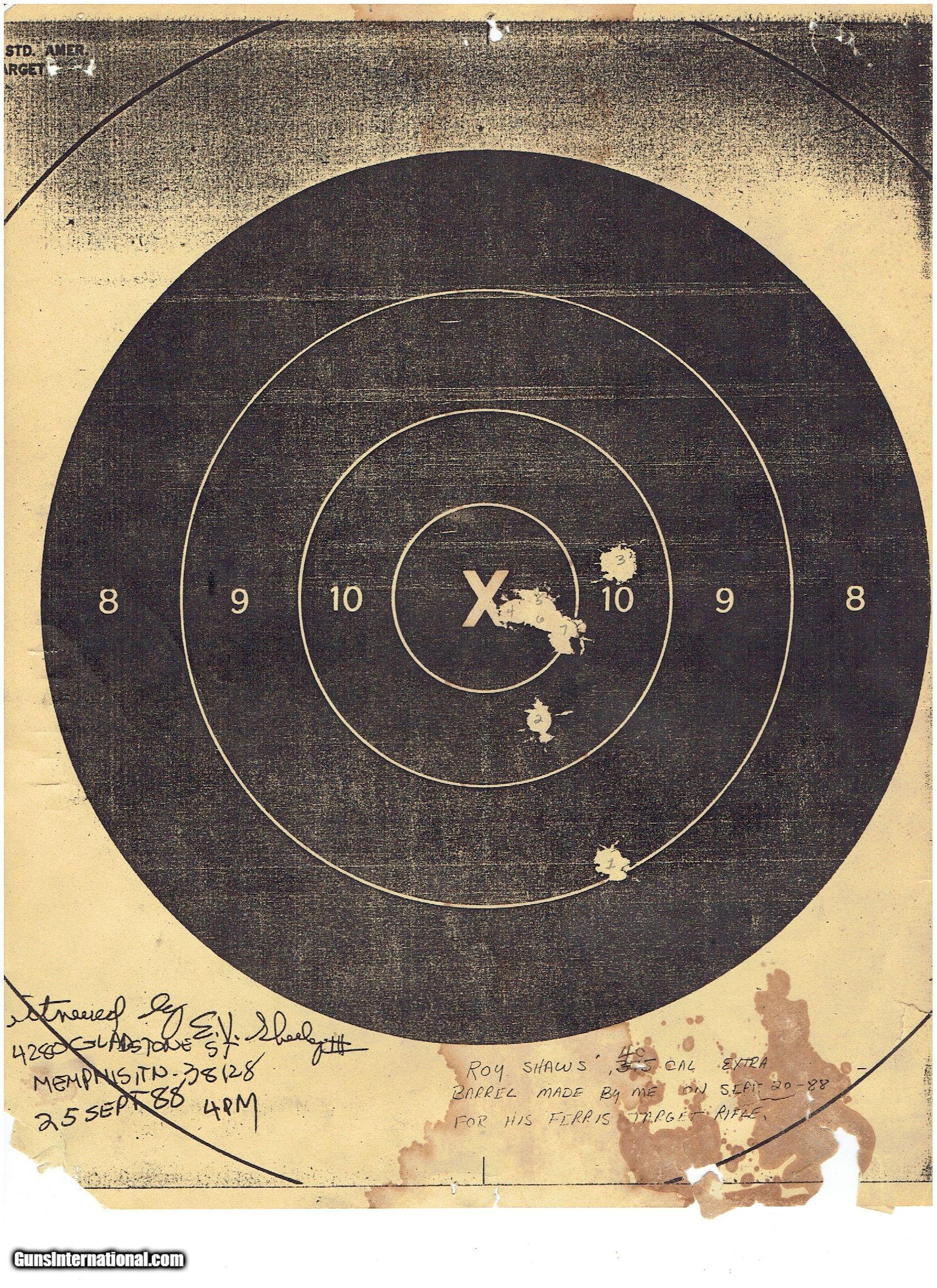 Description: Ken Owen Copy of Ferriss Creedmore Target Rifle .451 & .400 combination (2 barrel set) percussion Ferriss Creedmore long range match rifle. Built in the late 1980s for Roy Shaw, international shooter. This gun is a direct copy of the original Ferriss pictured in The Cap Lock Rifle, by Ned Roberts. The original was owned by Val Forgett of Navy Arms. This is the third of three replicas built by Ken Owen. The first was built for Heidi, Val's wife. Condition is nearly new. .40 & .45 cal moulds are included. SALE PENDING SOLD |