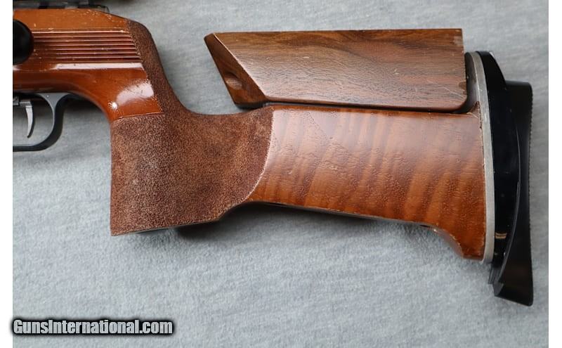Description: Anschutz rifles are the first choice of serious competitive .22 shooters worldwide. The Model 1903 is the Anschutz entry level competition rifle. The rifle is bedded in a competition stock with adjustable cheek piece. This is an extremely accurate target rifle that can give all levels of shooters an edge on the competition. This left handed example is still in good shape and ready to hit the range. .22 Long Rifle Metal Condition: good Wood Condition: good Bore Condition: bright Barrels: 25.25" barrel Triggers: adjustable trigger Stock Dimensions: adjustable stock Fore End: wood Butt Pad: rubber Weight: 9 lb - 2 0z Sights: "Anschutz target sights, rear peep Item Location: La Vista, NE Price: $999.99 Contact Seller |