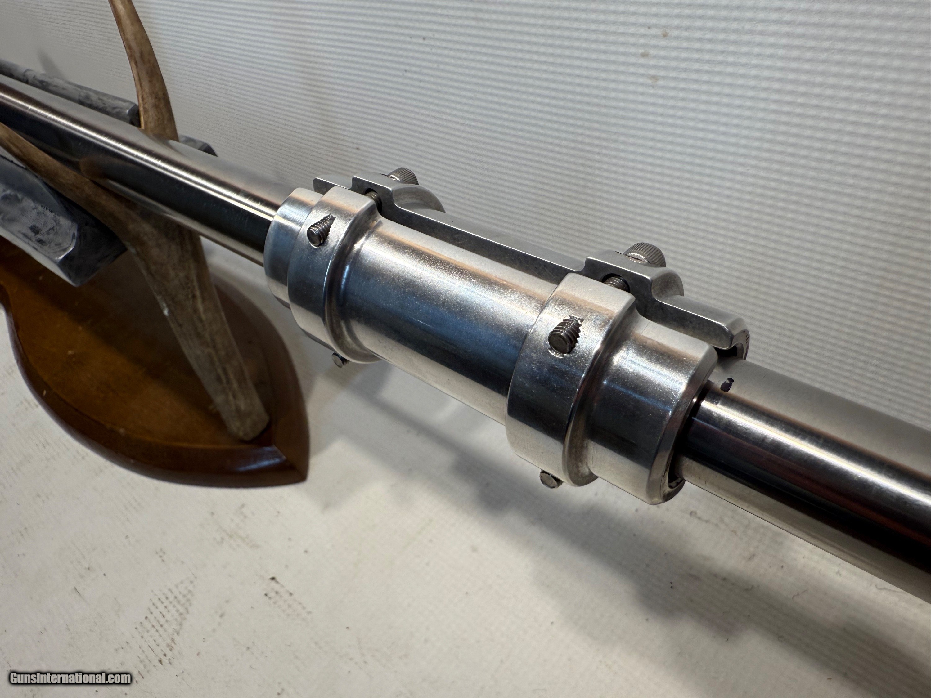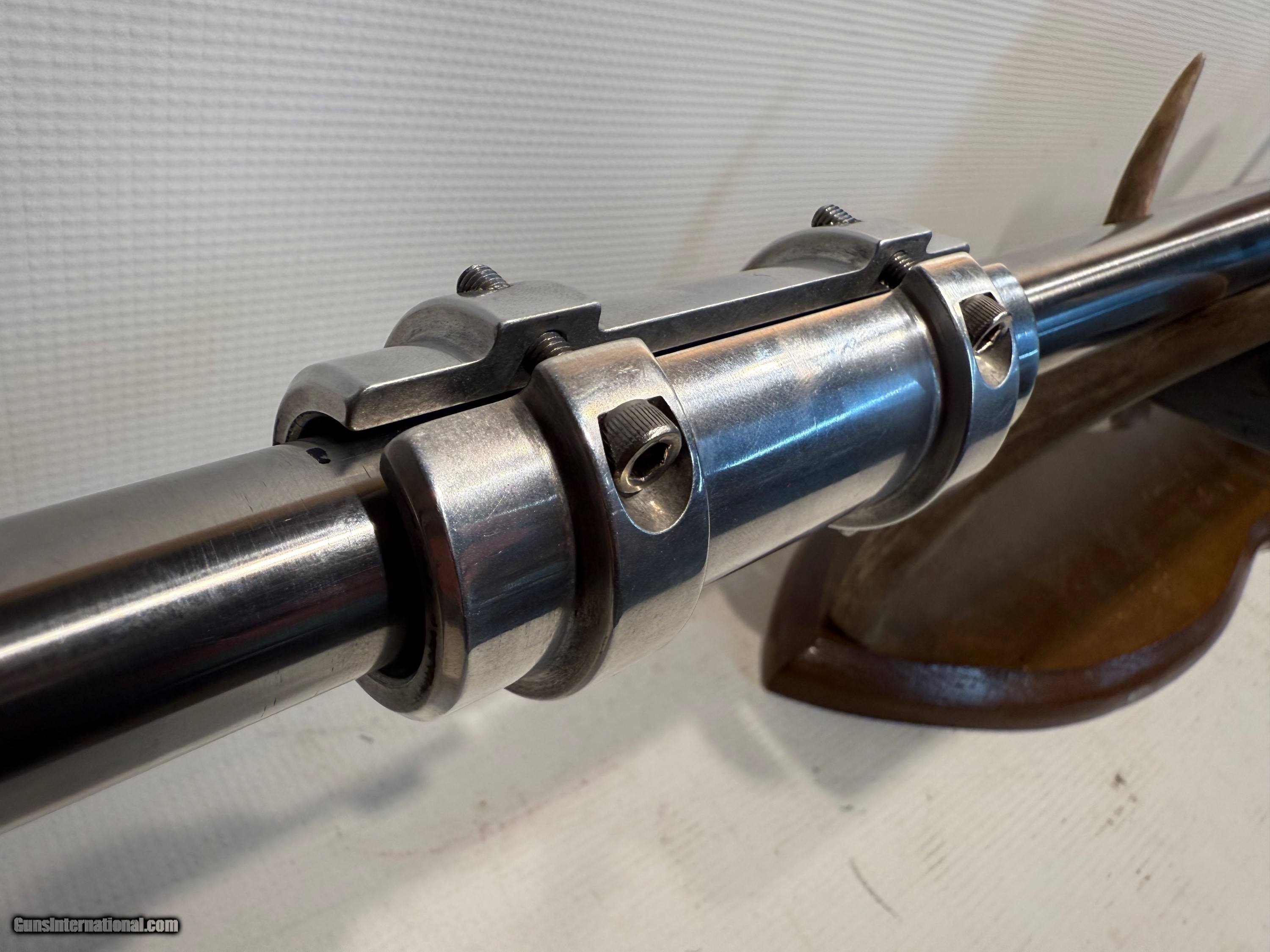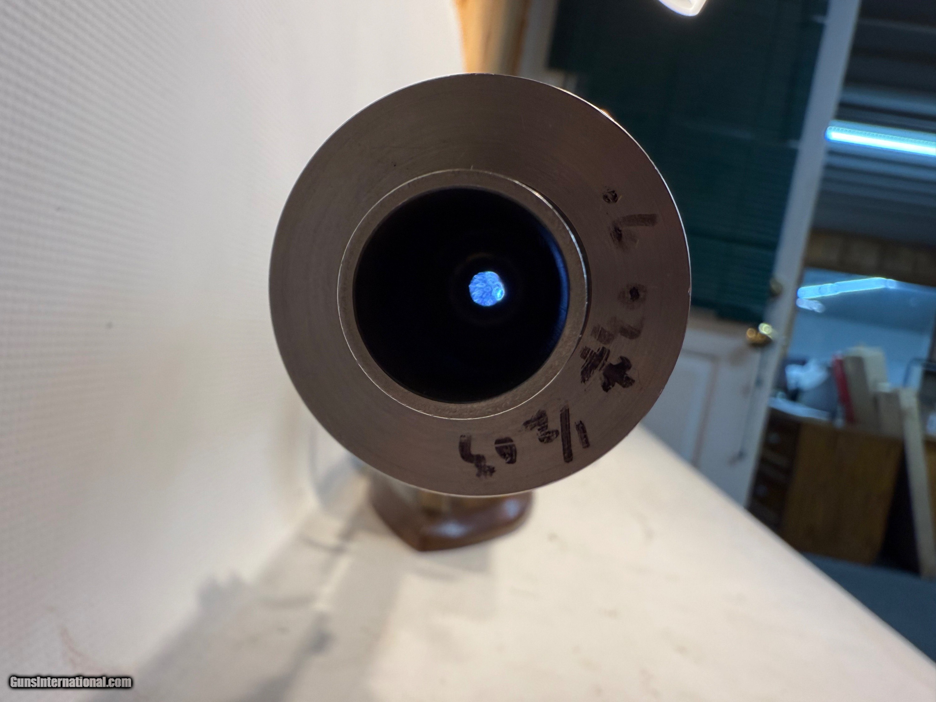 Description: Here we have a completely custom Hall MFG. RF 506 chambered in .22 LR. This gun features a Leupold Competition Series 40x45 scope, a 24" heavy stainless Gorham barrel, single shot, barrel/bullet stabilizers, a custom target trigger, right hand bolt with a left hand eject, leather scope caps and a showpiece target stock. This gun is in great condition! The stock has some wear marks on the underside and on the edges. The stock is in 90% +/- condition. The barrel and reciever have a few markings and are in 95% +/- condition. The bore looks to be in 95% +/- condition with great rifling! Overall, this rifle is in 95% +/- conditon! Please call us with questions before purchasing. SOLD Rifle Caliber: .22 Long Rifle Manufacturer: Hall MFG Model: RF 506 Serial Number: NSN Barrel Length: 24” Condition: 95% +/- Metal Condition: 95% +/- Wood Condition: 90% +/- Bore Condition: 95% +/- Barrel Type: Gorham Stainless Heavy Barrel |
