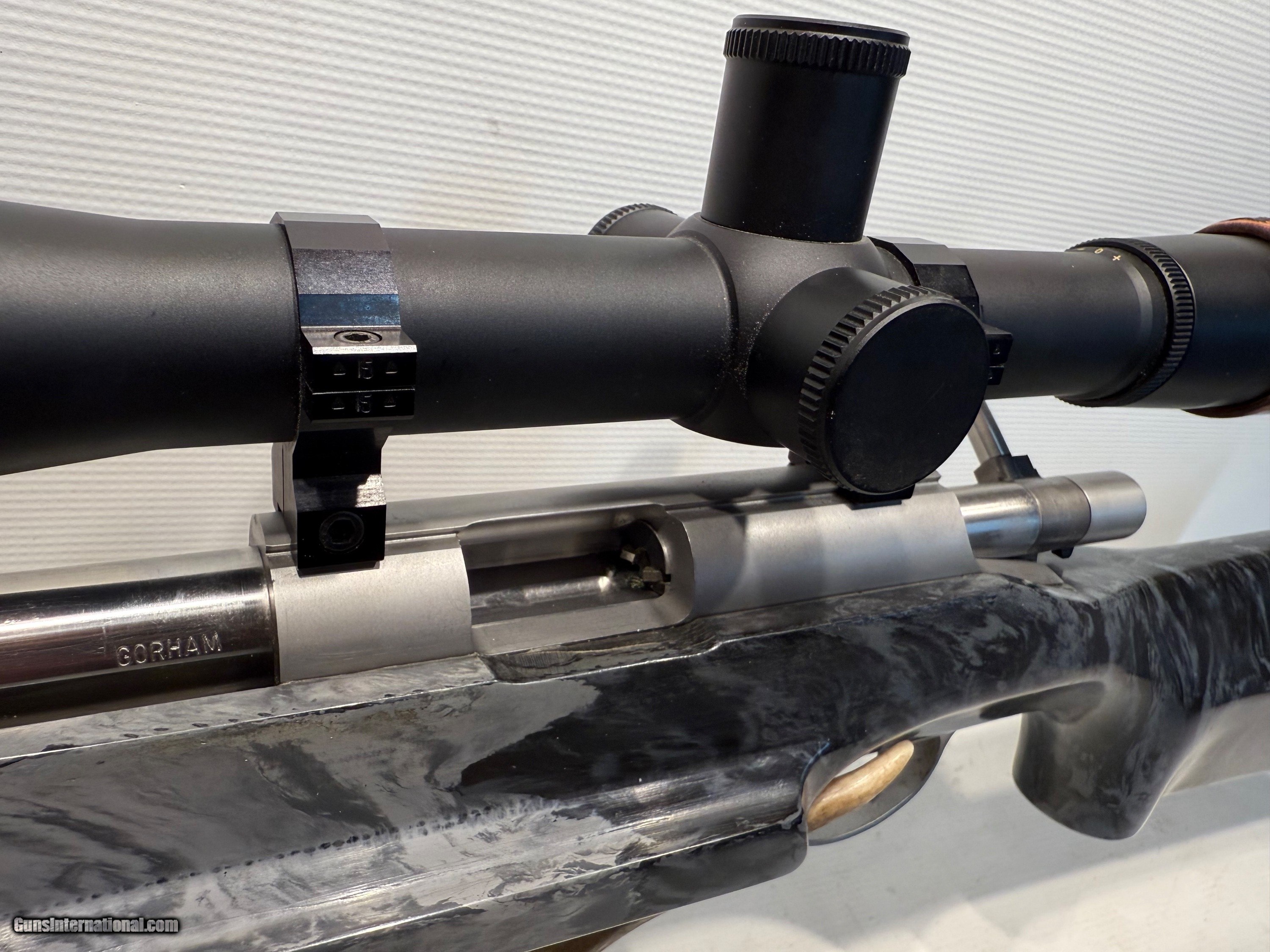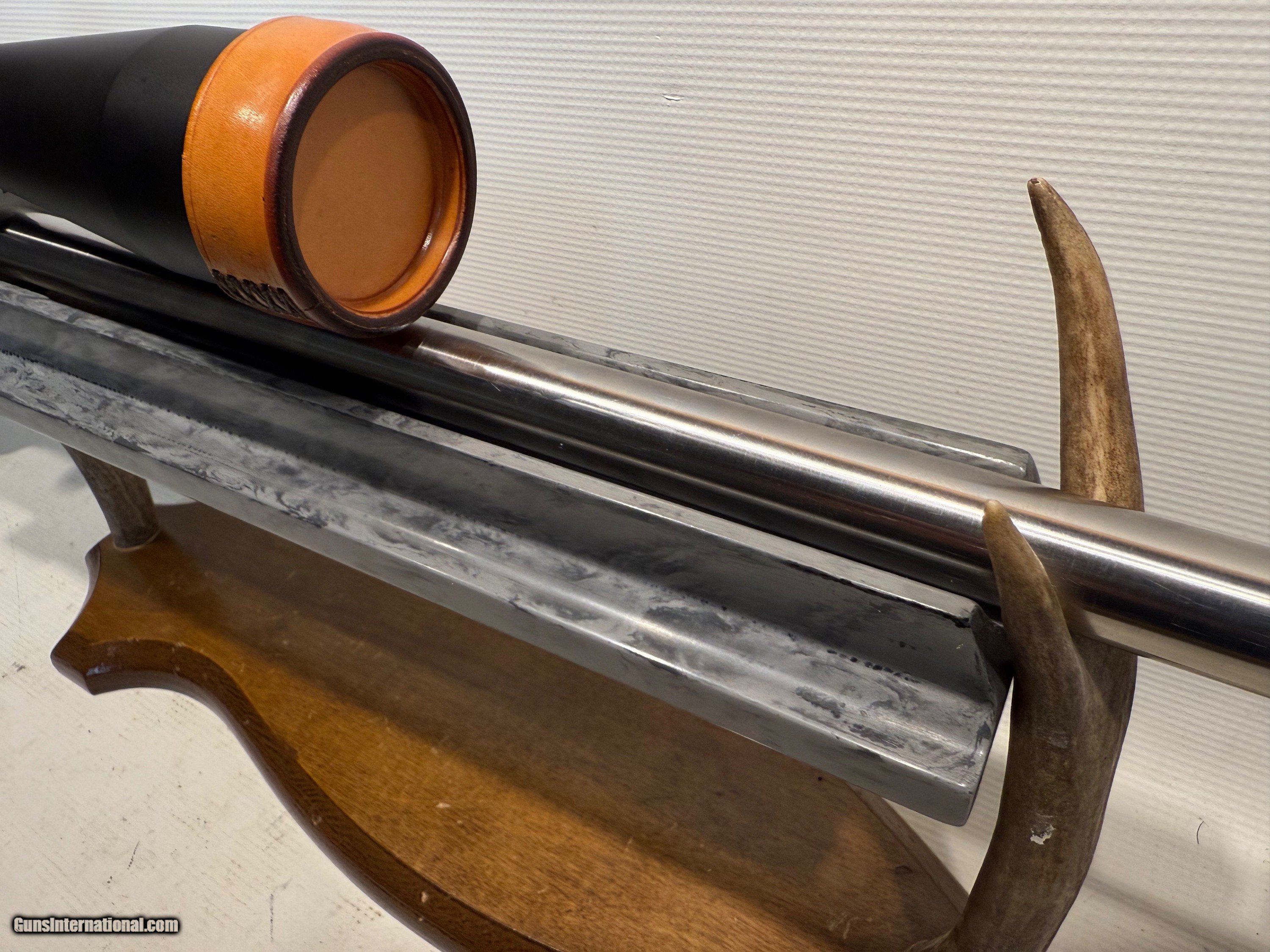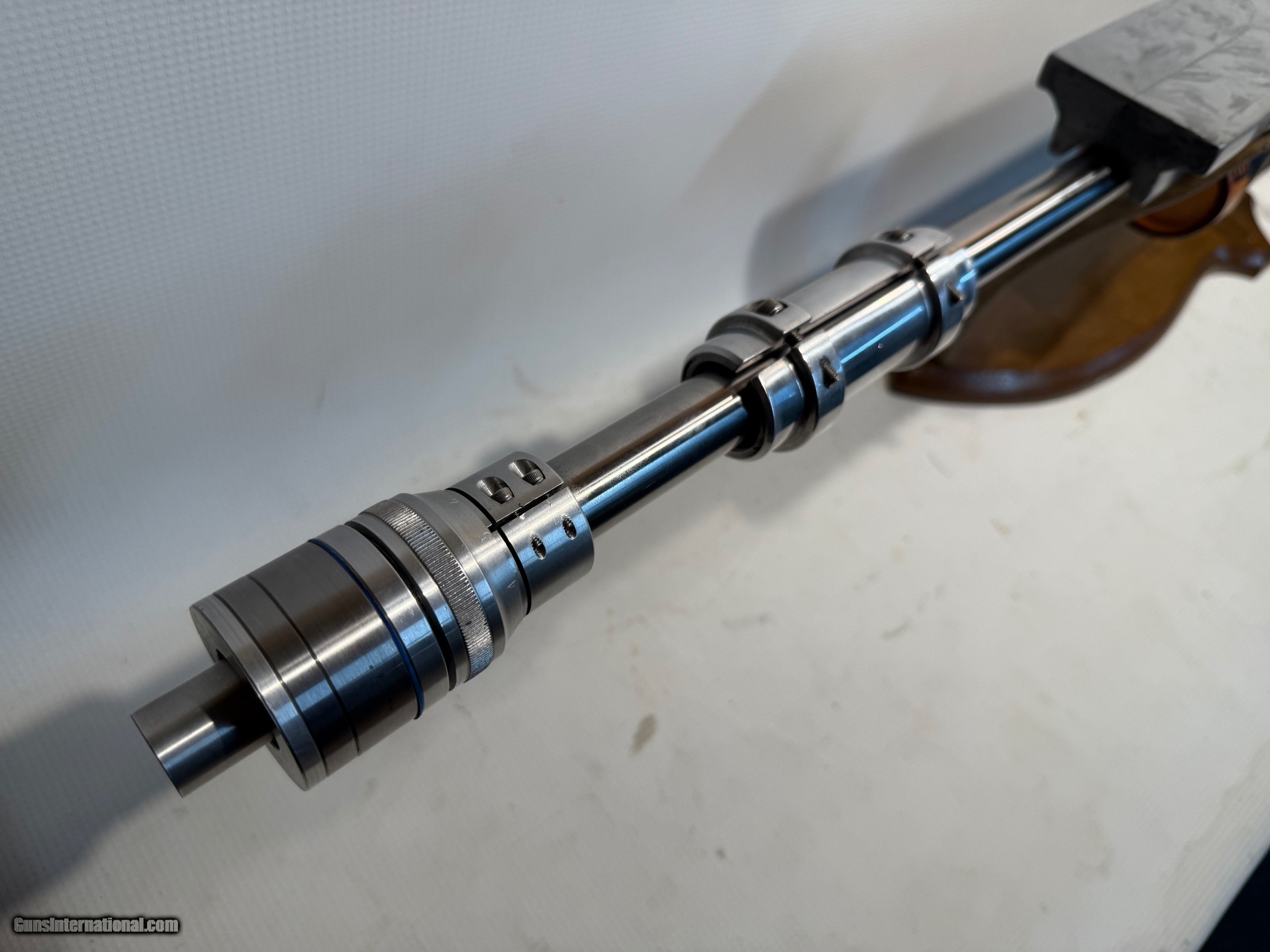Description: Here we have a completely custom Hall MFG. RF 506 chambered in .22 LR. This gun features a Leupold Competition Series 40x45 scope, a 24" heavy stainless Gorham barrel, single shot, barrel/bullet stabilizers, a custom target trigger, right hand bolt with a left hand eject, leather scope caps and a showpiece target stock. This gun is in great condition! The stock has some wear marks on the underside and on the edges. The stock is in 90% +/- condition. The barrel and reciever have a few markings and are in 95% +/- condition. The bore looks to be in 95% +/- condition with great rifling! Overall, this rifle is in 95% +/- conditon! Please call us with questions before purchasing. SOLD Rifle Caliber: .22 Long Rifle Manufacturer: Hall MFG Model: RF 506 Serial Number: NSN Barrel Length: 24” Condition: 95% +/- Metal Condition: 95% +/- Wood Condition: 90% +/- Bore Condition: 95% +/- Barrel Type: Gorham Stainless Heavy Barrel |