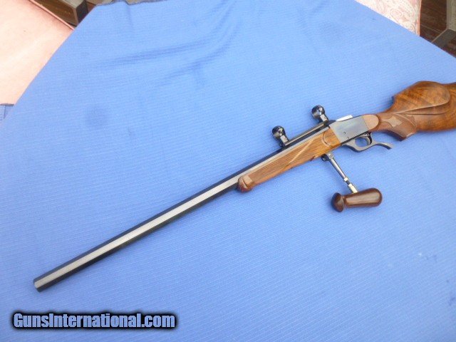 Description: A gorgeous Miller Arms 22 Long Rifle Rimfire. Of the 600+ actions made very few were made in the 22 Rimfire. This one being one of the nicest high grade rifles made. To duplicate today would be over $5,000.00. With the cut down "Low Boy" receiver makes this A dream gun to shoot. Tapered octagon barrel, drilled and tapped for Unertl blocks es with the Miller short base with rings.Truly one of the nicest handling 22 Rimfire ever made. $3900.00 + shipping insured in hardcase . SOLD Rifle Caliber: .22 Long Rifle Manufacturer: Miller arms Model: Low Boy Barrel Length: 25 Condition: Excellent Metal Condition: Excellent Wood Condition: Excellent Bore Condition: Excellent Action: Falling block |