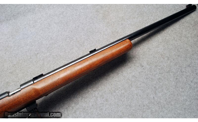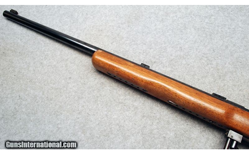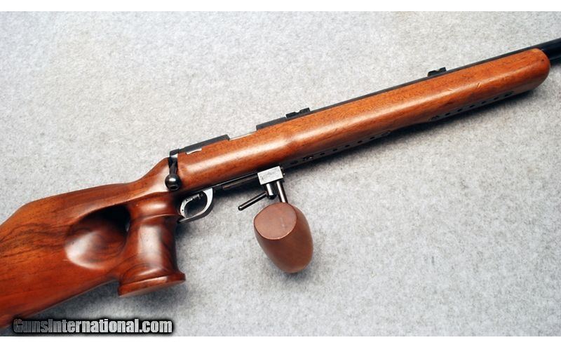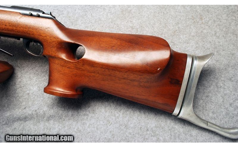 Description: Here we have a nice example of a Winchester 52B set up for off-hand target shooting. The gun is equipped with a Freeland style thumbhole stock, hooked buttplate, and palm rest. Also installed are a set of Lyman style scope/sight blocks and a removable trigger shoe. With the right optic or iron sights, this rifle should be ready to dominate the smallbore matches once again. .22 Long Rifle SOLD Metal Condition: "Good, with some minor dings and bluing wear. Some areas turning to a brown patina. Wood Condition: "Good, with some minor dings and dents. There is a 1"" crack at the toe. Bore Condition: "Excellent, bright, shiny, and with strong rifling. Barrels: 28 Weight: 13 lbs. 4 oz. Sights: "None, Lyman style scope blocks installed Item Location: Scarborough, ME |