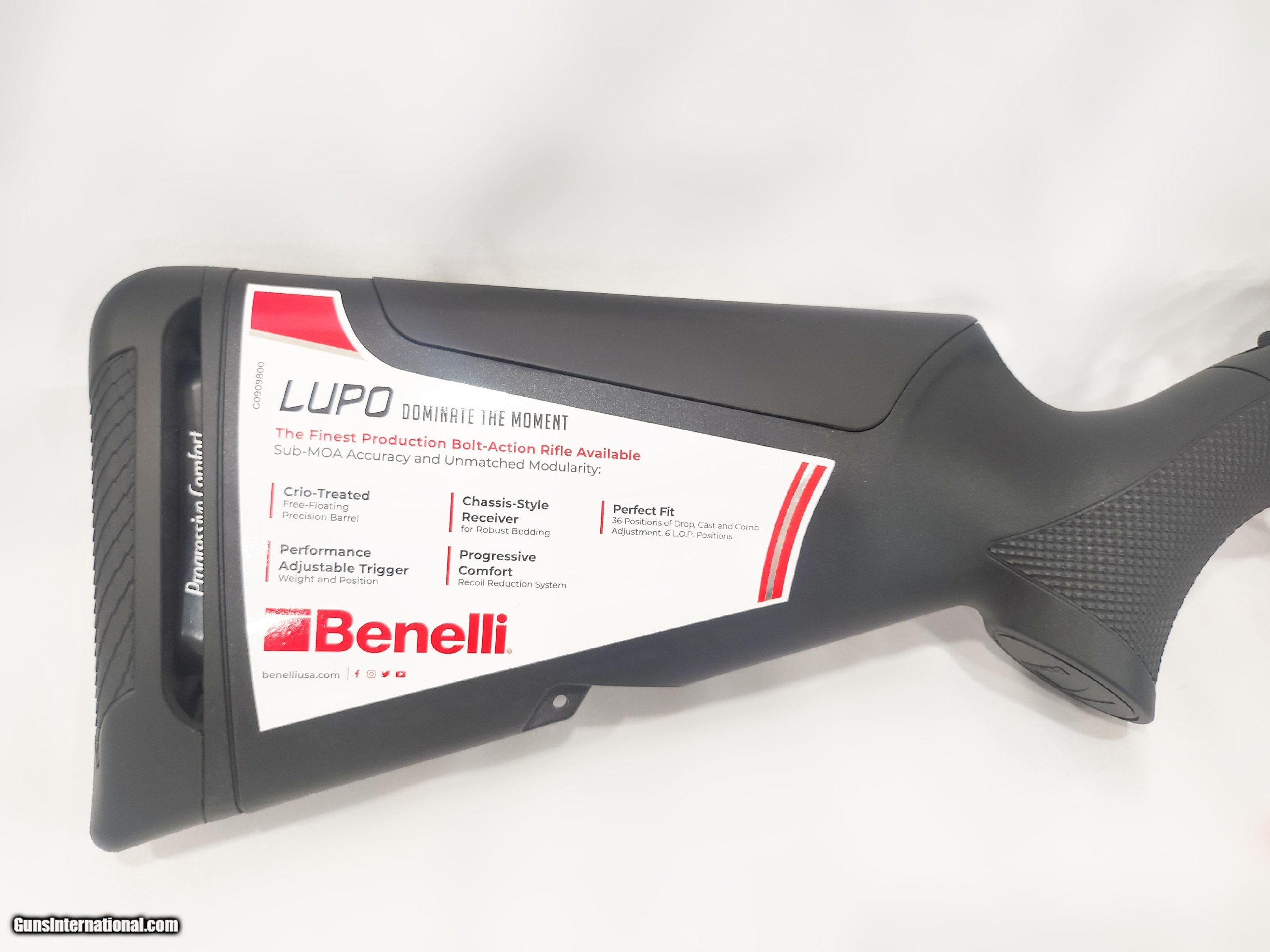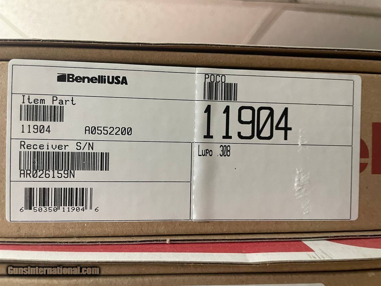Description: Benelli LUPO Stock Finish: Black Synthetic Receiver Finish: Matte, Blued Barrel Finish: Matte, Blued Caliber: .308 Winchester Barrel Length: 24" Stock Configuration: Progressive Comfort Hand-Dominance: Right Handed Magazine Capacity: 5 Action: Bolt Action Condition: Factory New (Note: This gun is a display model and may show signs of handling) Shipping: TBD (contact seller) SOLD Rifle Caliber: .308 Winchester Serial Number: AR026159N |