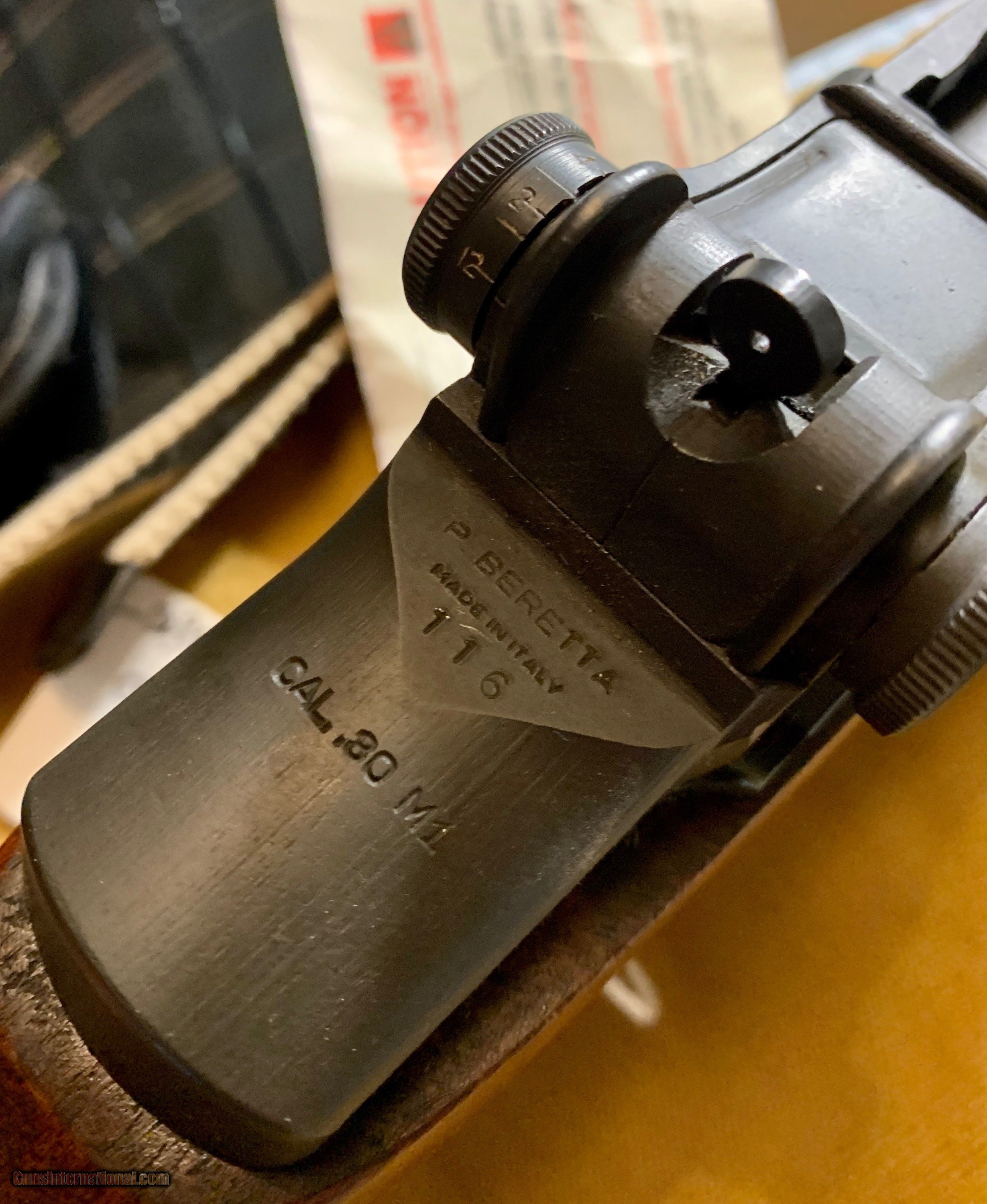 Description: Edit - this is actually a Beretta M1 Garand 7.62x51MM Nato upon further research. From my late father's estate. I admit I know very little about this weapon other than some research and the sale tag. Please, see pics and make your own conclusions. The rifle is pristine ... possibly never fired. Includes a bag of "u-shaped clips" for the ammo and the accessories you see here in pictures. SOLD Manufacturer: Beretta Serial Number: 116 Caliber Info: 7.62 x 51 Bore: Excellent Chambers: Excellent Condition: Excellent Metal Condition: Excellent Wood Condition: Excellent Bore Condition: Excellent Finish: Blued |