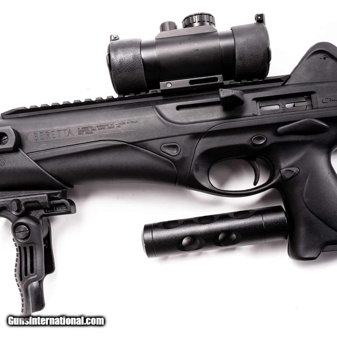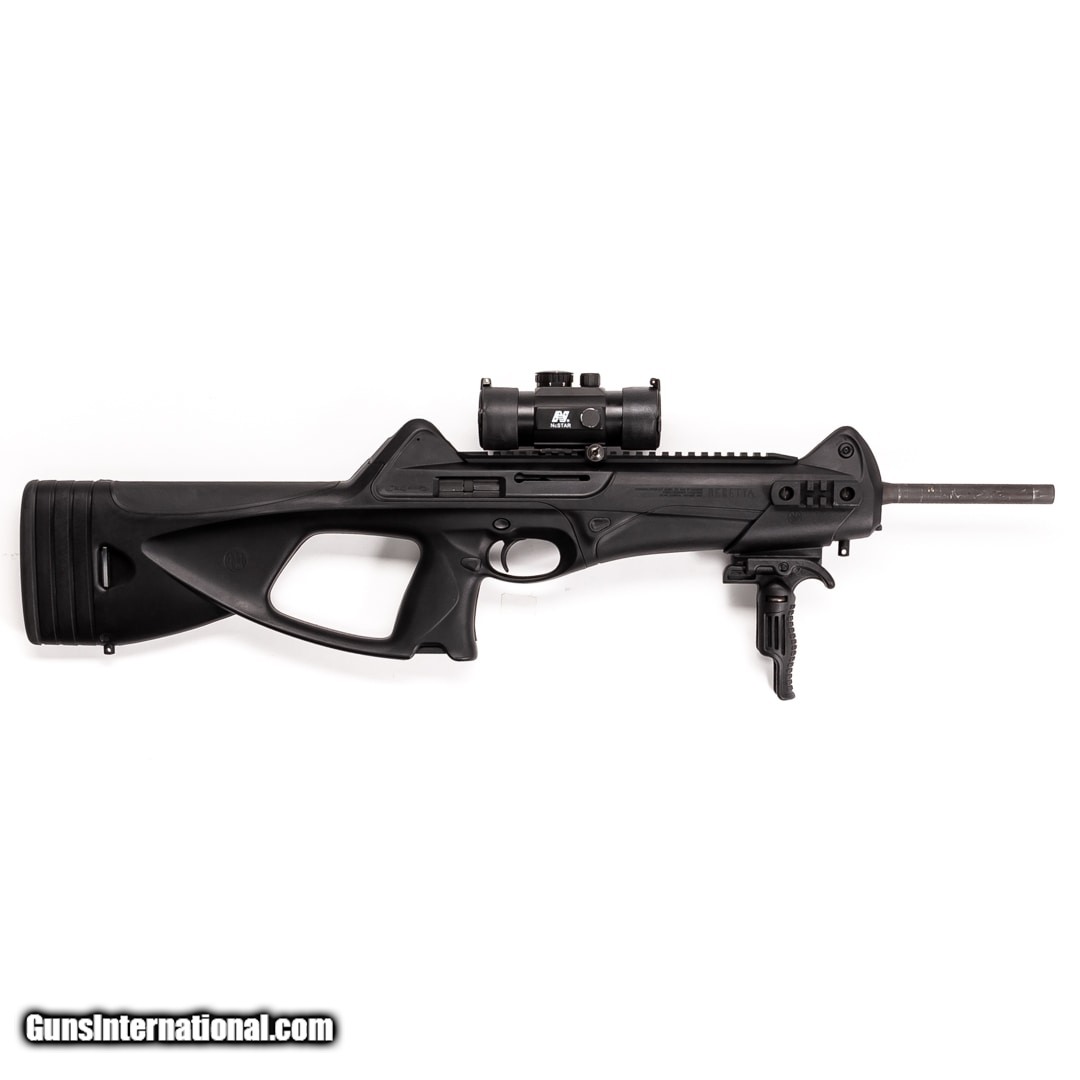 Description: Guns Listing ID: 292750 The Beretta CX4 Storm is a compact rifle that uses pistol calibers and magazines. This model is chambered in 45 ACP. A barrel shroud, NC Star optic, folding foregrip, and 1-8 round magazine are included. SOLD Manufacturer: BERETTA Model: CX4 STORM Caliber Info: .45 ACP Condition: Used - Certified Barrels: 16.6 BARREL Finish: BLACK |