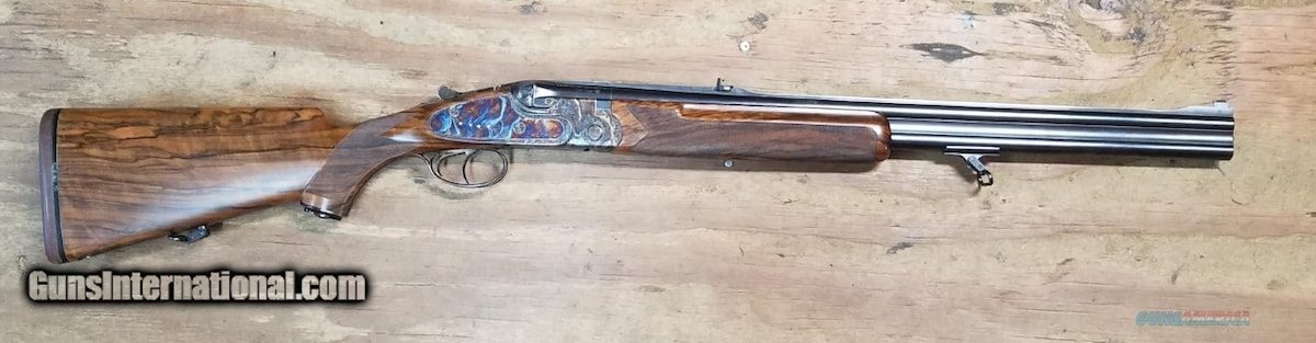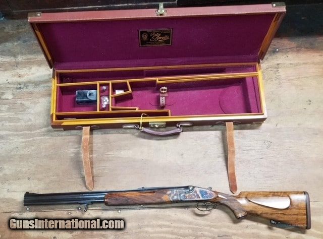 Description: Guns Listing ID: 210183 Built individually to the customer‚‚s specifications from 1990 to 2014. Blued barrels in .458 Winchester Magnum signed \"P. Beretta\" and \"Express\" on the left side of the upper barrel, gold inlaid \"1\" on the solid rib at the breech, automatic ejectors, beaded blade front sight, matted two leaf rear sight (one folding leaf, one fixed) Highly figured walnut pistol grip stock with fine checkering, forearm hardware engraved to match and gold inlaid \"1,\" engraved trapdoor grip cap containing an extra front sight, raised cheek piece, engraved cartridge door, and solid Old English Pachmayr recoil pad. (Comes with a Custom Beretta Carrying Case. SOLD Manufacturer: BERETTA Model: Express Caliber Info: .458 WIN MAG Condition: Used - Non-Certified Barrels: 24.5 BARREL Finish: WALNUT, BLUED |