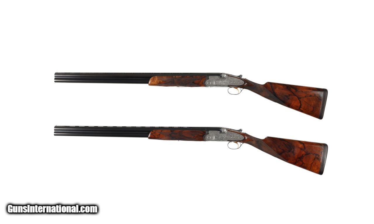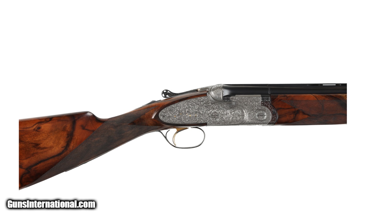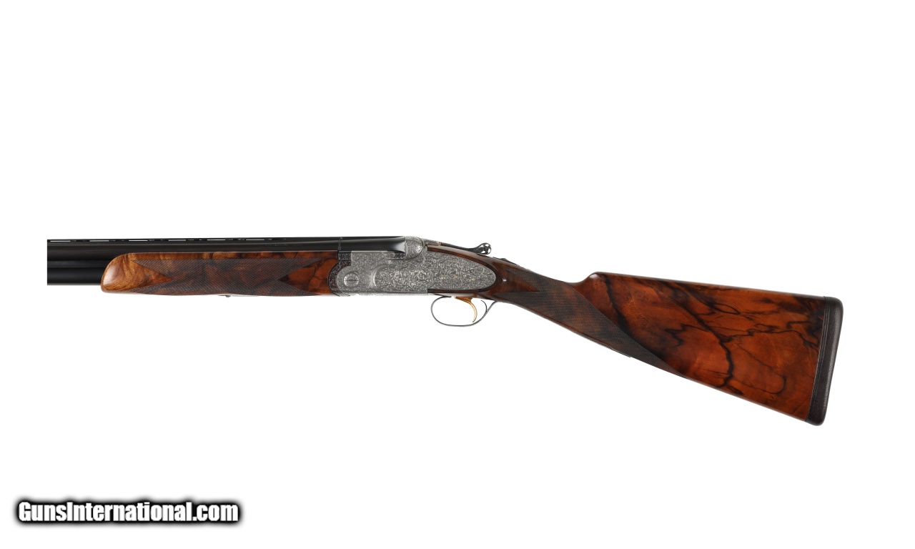 Description: A solid pair of guns with some light handling. One bottom tang is proud. Leather case. Manufactured in: Italy Hand: Right Hand Action Finish: Coin Metal Finish: Original Barrel Length: 28 Inches Barrel Condition: Very Good Stock Finish: Original Stock Condition: Very Good Type of Butt: Leather Covered Pad Pad Thickness: .75 Grip: Straight Grip Forend: Checkered Cast Amount: 1/4" Extra Barrels: No. SOLD Manufacturer: Beretta Model: SO6 EELL Chambers: 2 3/4 Ejectors: Yes Condition: Preowned Metal Condition: Very Good Action: Sidelock Triggers: Single Gauge Info: 12 Gauge Stock Comb: 1 1/2 Stock Heel: 2 5/8 Stock Cast: Off Fore End: Checkered Butt Pad: .75 LOP: 14 1/2 Rib: Ventilated Finish: Original Chokes: IM/XF Extras: No. Case: Leather |