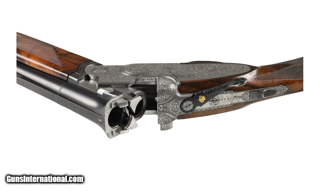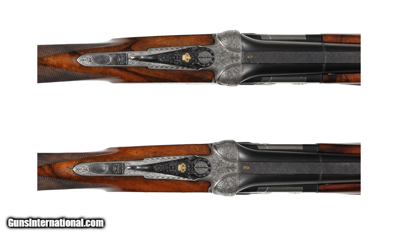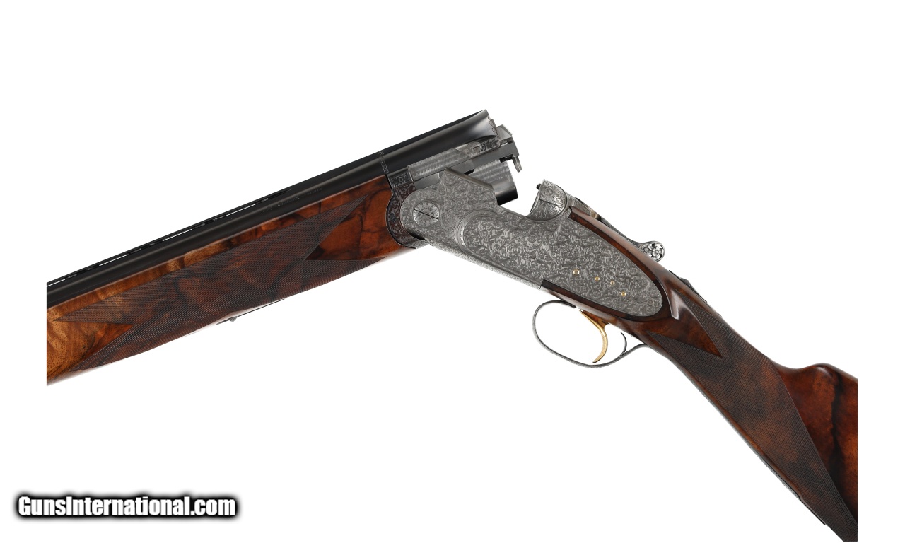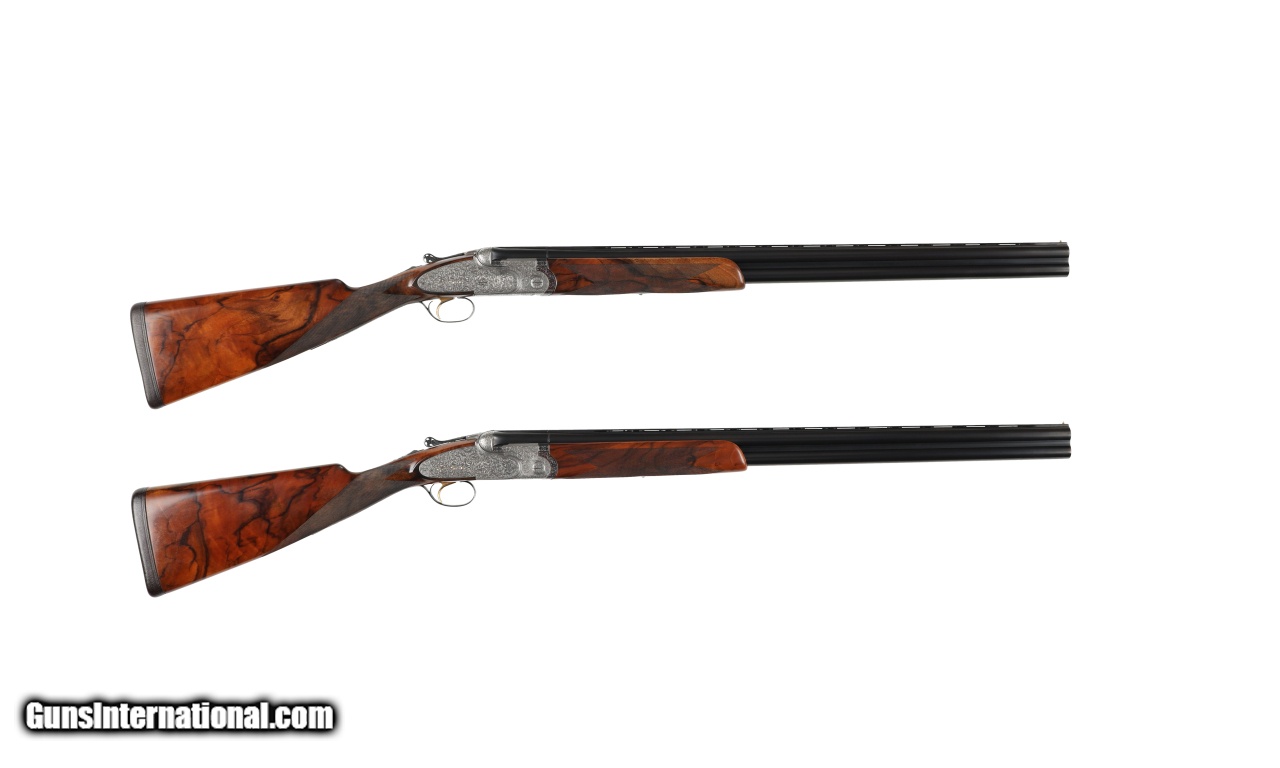 Description: A solid pair of guns with some light handling. One bottom tang is proud. Leather case. Manufactured in: Italy Hand: Right Hand Action Finish: Coin Metal Finish: Original Barrel Length: 28 Inches Barrel Condition: Very Good Stock Finish: Original Stock Condition: Very Good Type of Butt: Leather Covered Pad Pad Thickness: .75 Grip: Straight Grip Forend: Checkered Cast Amount: 1/4" Extra Barrels: No. SOLD Manufacturer: Beretta Model: SO6 EELL Chambers: 2 3/4 Ejectors: Yes Condition: Preowned Metal Condition: Very Good Action: Sidelock Triggers: Single Gauge Info: 12 Gauge Stock Comb: 1 1/2 Stock Heel: 2 5/8 Stock Cast: Off Fore End: Checkered Butt Pad: .75 LOP: 14 1/2 Rib: Ventilated Finish: Original Chokes: IM/XF Extras: No. Case: Leather |