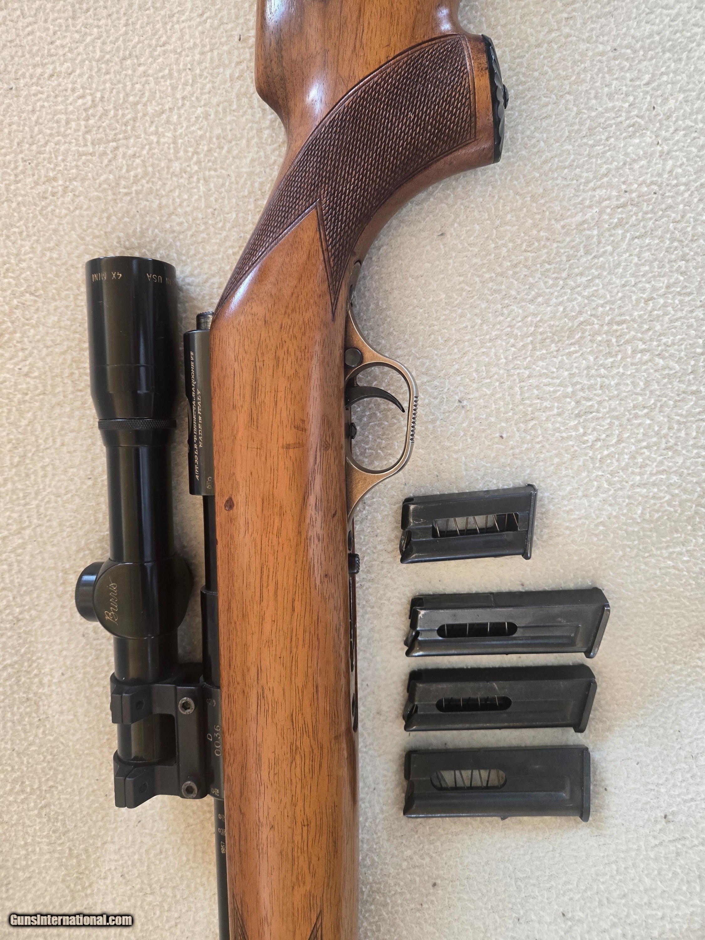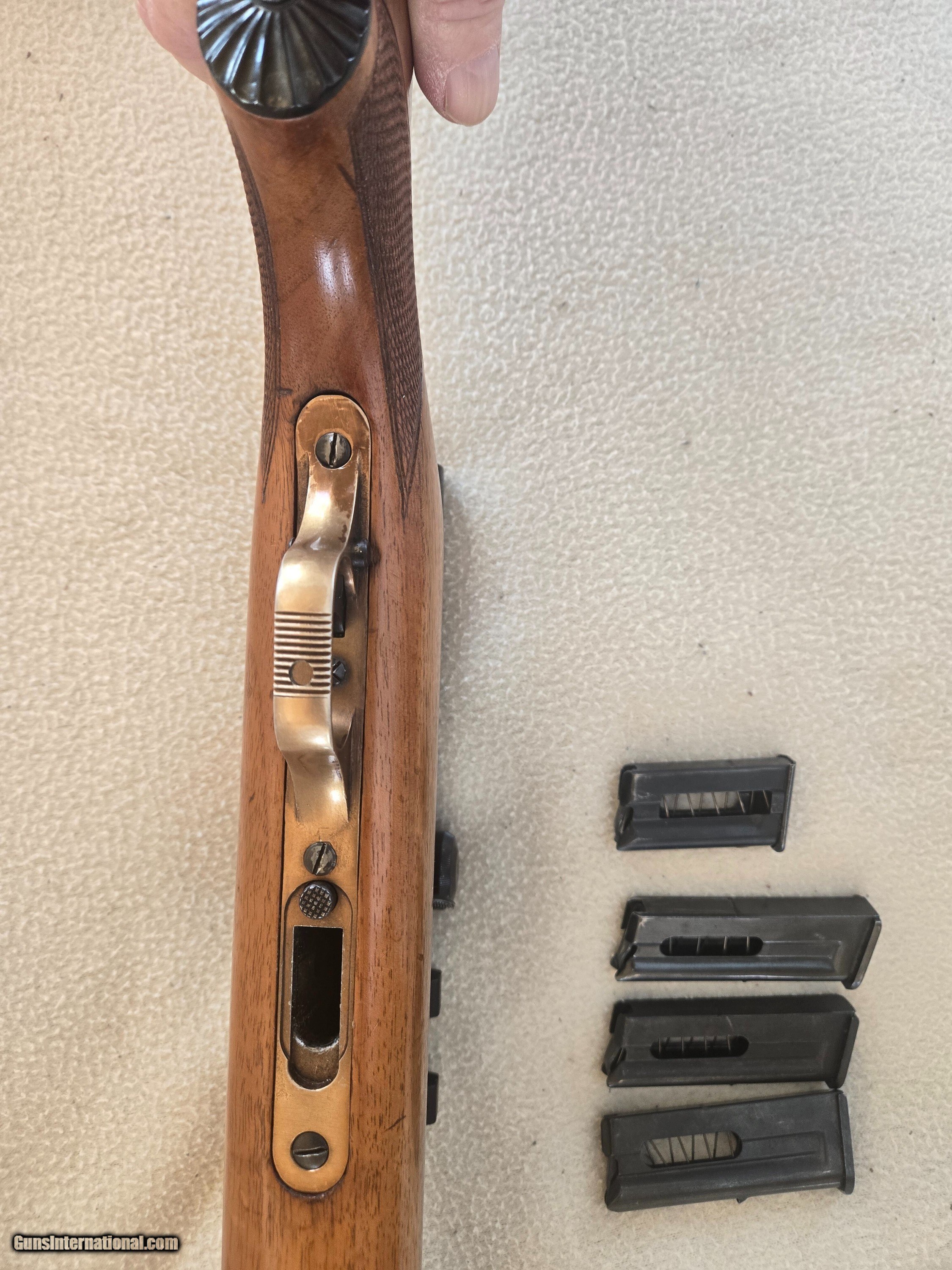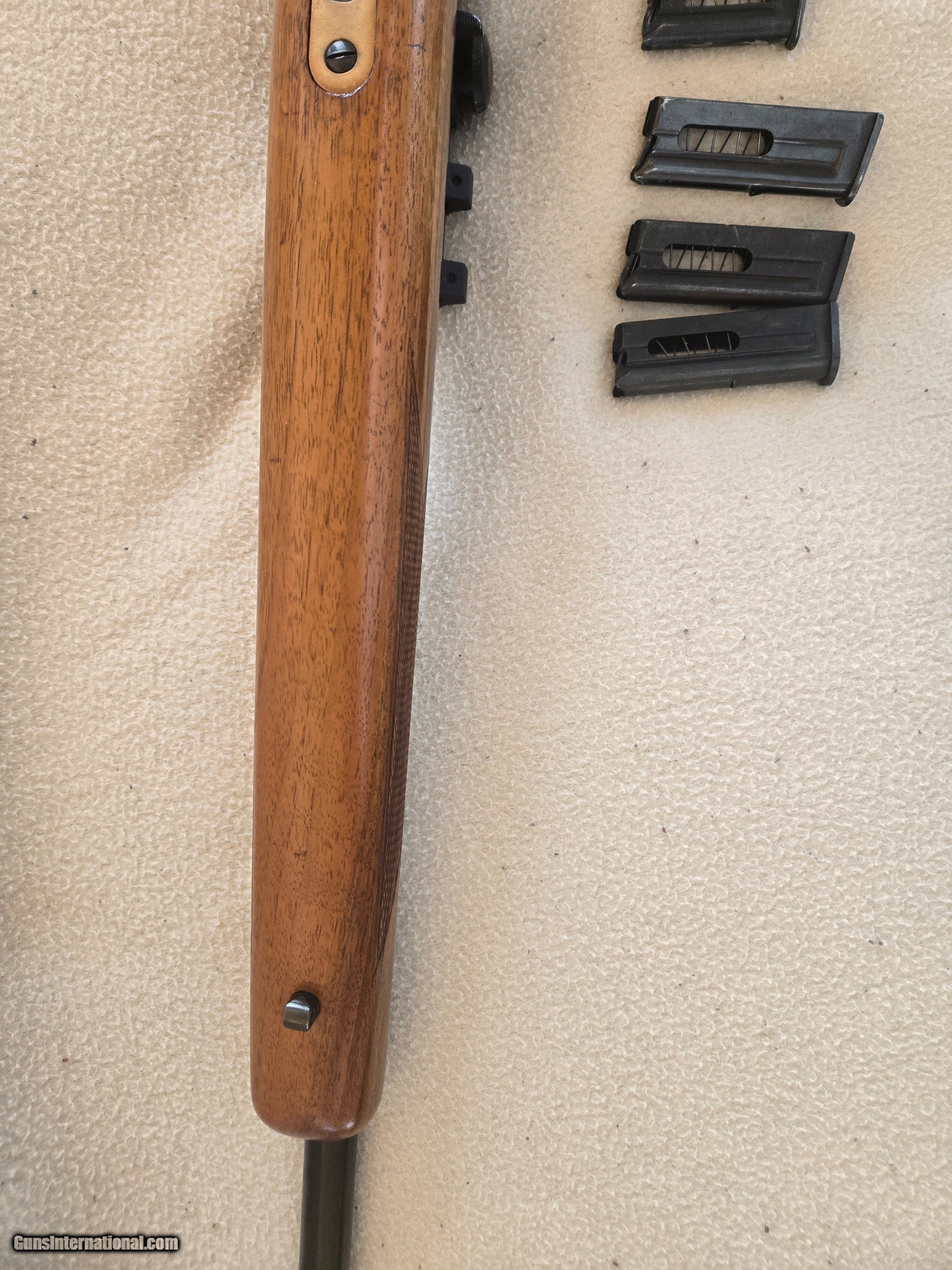 Description: Very rare and unique Beretta super sport 22lr semiautomatic rifle. Excellent condition. 4 magazines. 1- 5 shot and 3-10 shot. Burris 4x mini mount in very rare scope mount specific to this rifle. The original rear leaf sight is in place under the scope mount ! The scope mount is near impossible to aquire. Curio/Relic: Yes Rifle Caliber: .22 Long Rifle Manufacturer: Beretta Model: Super sport Condition: 90 % Action: Semi auto Manufacture Date: 1957 Price: $2,150.00 Shipping: $60.00 Contact Seller |