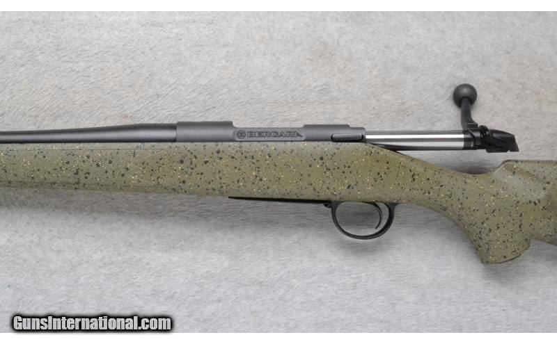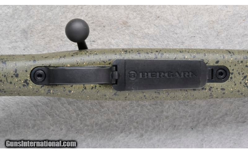 Description: This Bergara Model B-14 is a right hand bolt action rifle in .308 Win. Cal. It has a 22 inch barrel and is drilled and tapped for a scope mount. The butt stock is OD green polymer with black and tan speckles with a checkered pistol grip. It has a Bergara black rubber recoil pad. The forearm is checkered OD green polymer with black and tan speckles. .308 Winchester SOLD Chambers: Internal magazine with hinged floor plate Metal Condition: Excellent Wood Condition: Polymer butt stock has discolorations on both sides Bore Condition: Excellent Barrels: 22 inches Stock Dimensions: LOP 13.5 inches Fore End: Checkered grip OD green polymer with black and tan speckles Butt Pad: Bergara black rubber recoil pad Weight: 6 Lbs 9 oz Sights: None. Drilled and tapped for scope mount Item Location: Richfield, WI |