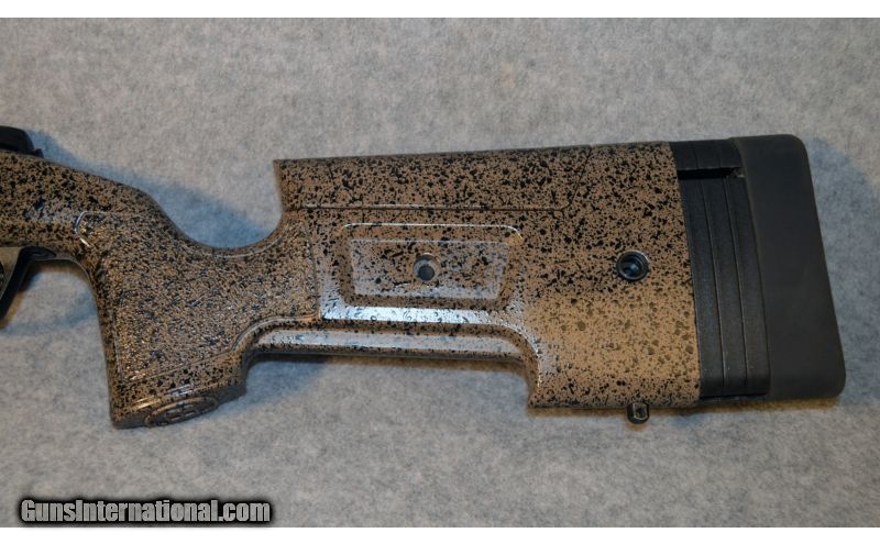 Description: A very nice Bergara B-14 in .308 Win. with 20" threaded heavy barrel. Has a synthetic HMR one piece stock and forend with sling attachments, adjustable comb and LOP. Metal is in very good condition and the stock has minor rubbing where a sling has been attached. Otherwise a firearm in very good condition overall. SOLD Manufacturer: Recent manufacture. Caliber Info: .308 Win. Chambers: Bolt action. Metal Condition: Very good overall. Wood Condition: Some rubbing on forend from sling, otherwise very good. Bore Condition: Very Good, shiny and bright. Barrels: 20" Threaded and blued. Triggers: Single stage with 2 position safety. Stock: Synthetic HMR stock and forend with adjustable comb and LOP. Stock Dimensions: Currently set at 14 1/2". Fore End: One piece stock and forend, with sling attachments. Butt Pad: Bergara rubber butt pad. Weight: 8 Lbs. 5 Oz. Sights: No Sights, but tapped and drilled for your rings and scope. Extras: Firearm comes with one 5 round magazine and original box. Item Location: Lexington, KY |