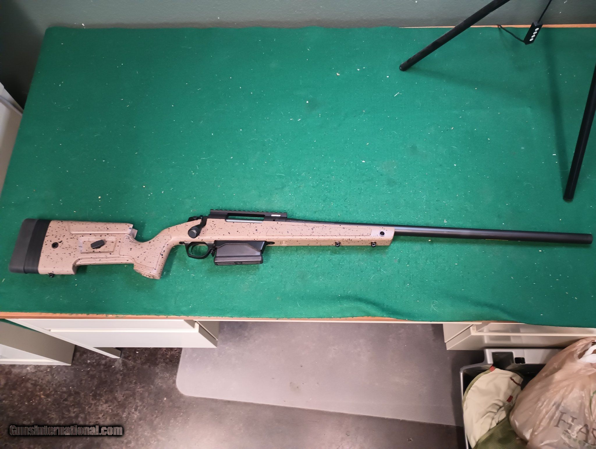 Description: Guns Listing ID: 401940 This Bergara B14HMR is chambered in .300 Winchester Magnum. It comes with one magazine and is in excellent condition. Bergara‚‚s B-14 Hunting and Match Rifle (HMR) is built for both hunters and competition shooters. It supports a fully free-floated, 4140 CrMo steel, barrel to achieve optimal precision. The barrel also features a black cerakote finish, is drilled and tapped, and has a threaded muzzle which includes a thread protector. The B-14 HMR rifle features an integrated mini-chassis molded into the stock to give the rifle repeatable bedding and accuracy. The stock also has an adjustable cheekpiece, length of pull spacers, and a QD flush cups for easy attachment and detachment of slings. Its super-smooth B-14 Action, is a two-lug system with a Sako-style extractor and a coned bolt nose and breech to ensure a smooth feeding and extraction of the cartridge. It‚‚s also outfitted with a Bergara curved trigger to guarantee a crisp, clean pull every time you fire the rifle. This 300 Winchester Magnum model has a 26\" barrel which is also compatible with Remington 700 sytle rings and bases. Action: Bolt Stock Description: Adjustable Cheekpiece Mini-Chassis Capacity: 5 Barrel Length: 26\" Caliber: 300 Win M SOLD Manufacturer: BERGARA Model: B-14 HMR Caliber Info: .300 WIN MAG Condition: Used - Non-Certified Barrels: 26 BARREL Action: BOLT ACTION Finish: TAN AND BLACK Weight: not specified |