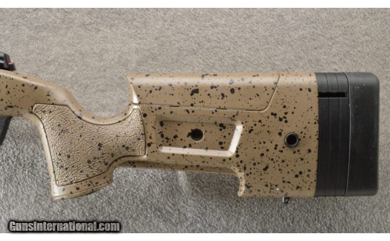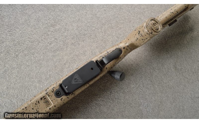 Description: Bergara B-14 HMR speckled Black/Brown bolt action rifle chambered in 6.5 PRC. This gun features a fully free-floated barrel with an integrated mini-chassis molded into the stock. The stock also has an adjustable cheekpiece and length of pull spacers. Other features include a signature Bergara curved trigger, threaded and tapped receiver, threaded muzzle with a thread protector, QD flush cups on each side of the stock with sling studs in the traditional location. Included is the factory box, one magazine and owners manual. 6.5 PRC SOLD Chambers: Bolt action. Metal Condition: New. Bore Condition: New. Barrels: 24' barrel. Triggers: Single. Stock Dimensions: Adjustable. Fore End: Textured. Butt Pad: Rubber. Weight: 10.25 lbs Sights: None. Item Location: Owatonna, MN |