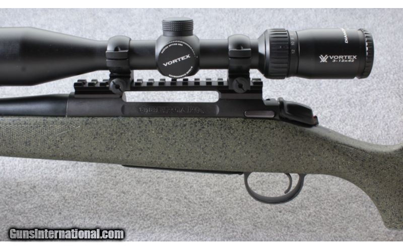 Description: Legendary for guaranteed accuracy right out of the box, the Bergara name has become the big-game hunter's choice for affordable, sharp-shooting performance. Highly efficient production techniques combine with meticulous design to make the B-14 Series Hunter Bolt-Action Rifles enough to boost any shooter's confidence. Equipped with the world-famous Bergara barrel crafted from 4140 CrMo steel and finished in matte blue. Elite performance details don't end with the barrel. A super-smooth B-14 action with a coned bolt nose and breech ensures consistent feeding and has a sliding plate extractor for proper alignment. The Hunter model has a molded synthetic O.D. Green stock crafted of glass-fiber-reinforced polymer. Solid steel pillars permanently molded into place ensure a secure and stable bedding surface for the barreled action. A SoftTouch coating gives the stock a soft, tacky feel for a secure grip even in harsh conditions. Other details include a hinged floor plate Bergara performance curved trigger is adjustable for 2.8 to 4.5 lbs. SOLD Manufacturer: 2018 Caliber Info: 7mm Rem. Mag. Metal Condition: Excellent Bore Condition: Excellent Barrels: 24 inch #4 taper barrel Triggers: Adjustable trigger Stock: Synthetic model pistol grip stock with adjustable cheek rest Stock Dimensions: 13 3/8 inch LOP Butt Pad: Factory rubber pad Weight: 9 lbs. 8 oz. with scope and bi-pod Sights: Vortex Diamondback 3-12x42mm scope Item Location: Lehi, UT |