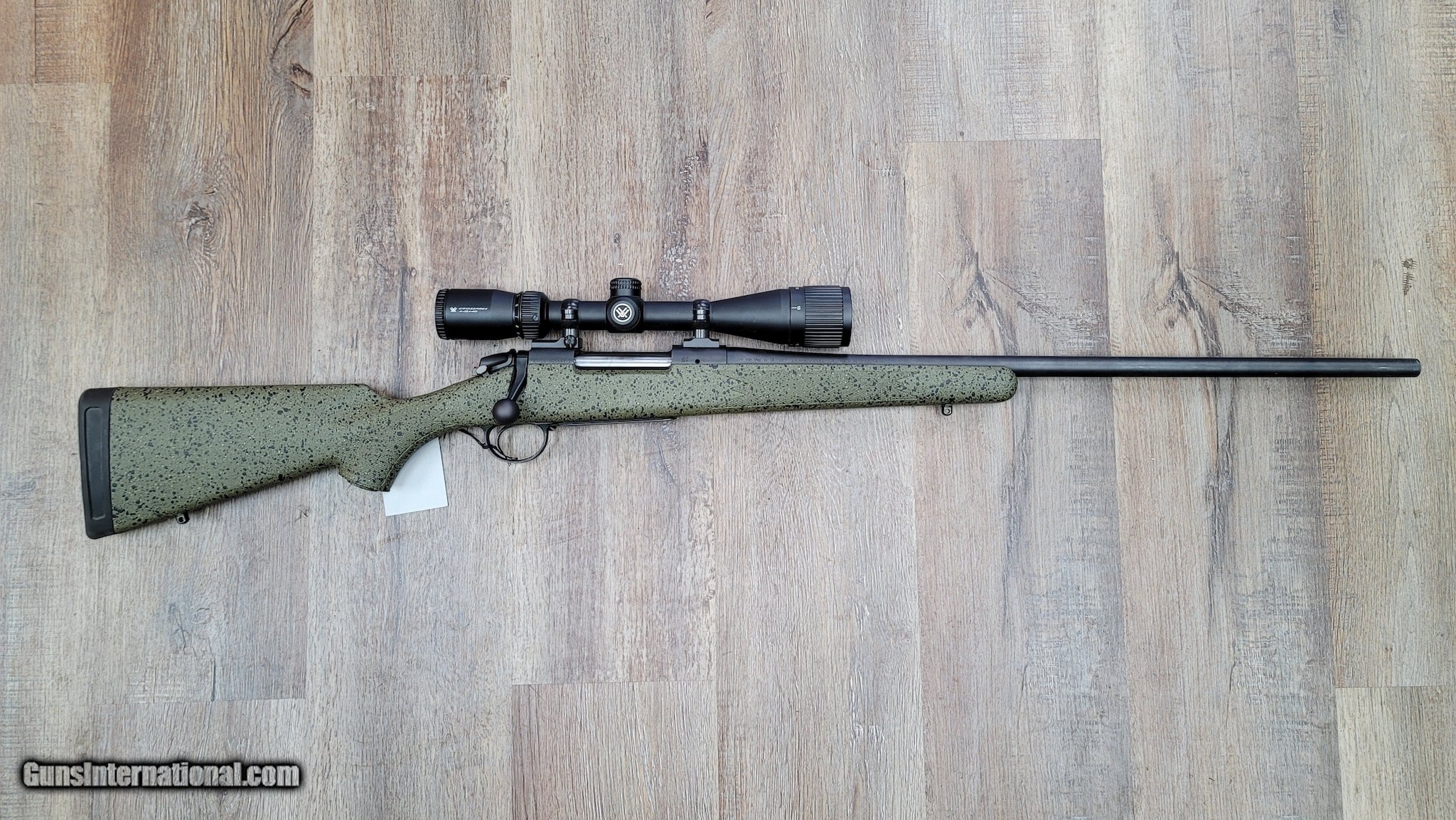 Description: Guns Listing ID: 401423 Bergaras B-14 Hunter Rifle is ideal for serious big-game hunters. It has a 4140 CrMo steel barrel which features a matte blued finish and is drilled and tapped. The molded synthetic stock is made of glass fiber reinforced polymer with bedded integral pillars for stability and enhanced accuracy. A SoftTouch coating gives the stock a soft tacky feel that is easy to grip even in harsh weather. Its super-smooth B-14 Action is a two-lug system with a Sako-style extractor and a coned bolt nose and breech to ensure a smooth feeding and extraction of the cartridge. Its also outfitted with a Bergara curved trigger to guarantee a crisp clean pull every time you fire the rifle. This 300 Winchester model has a 24 barrel which is also compatible with Remington 700 style rings and bases. It has a hinged floor plate magazine. Scope not included. SOLD Manufacturer: BERGARA Model: B-14 HUNTER Caliber Info: .300 WIN MAG Condition: new Barrels: 24" barrel |
