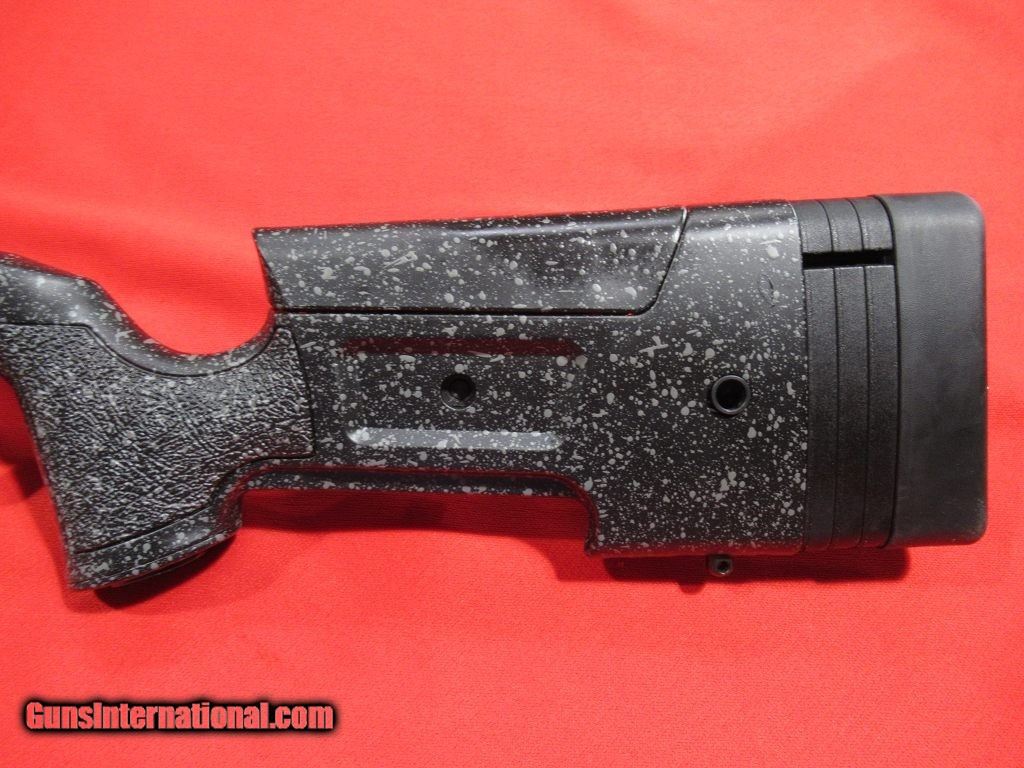 Description: Accurate full size 22LR precision training rifle built on the same platform as the Remington 700: single stack magazine built to the same dimensions as a standard short action AICS magazine, number 6 taper carbon Bergara barrel, 1/2"x28 threaded muzzle with protector, drilled and tapped to use Rem 700 compatible scope mounts (6-48), HMR mini chassis stock that has an adjustable comb and LOP spacers, integrated QD sling cups on each side of the stock and forearm as well as dual swivel studs on the bottom of the forearm. SOLD |