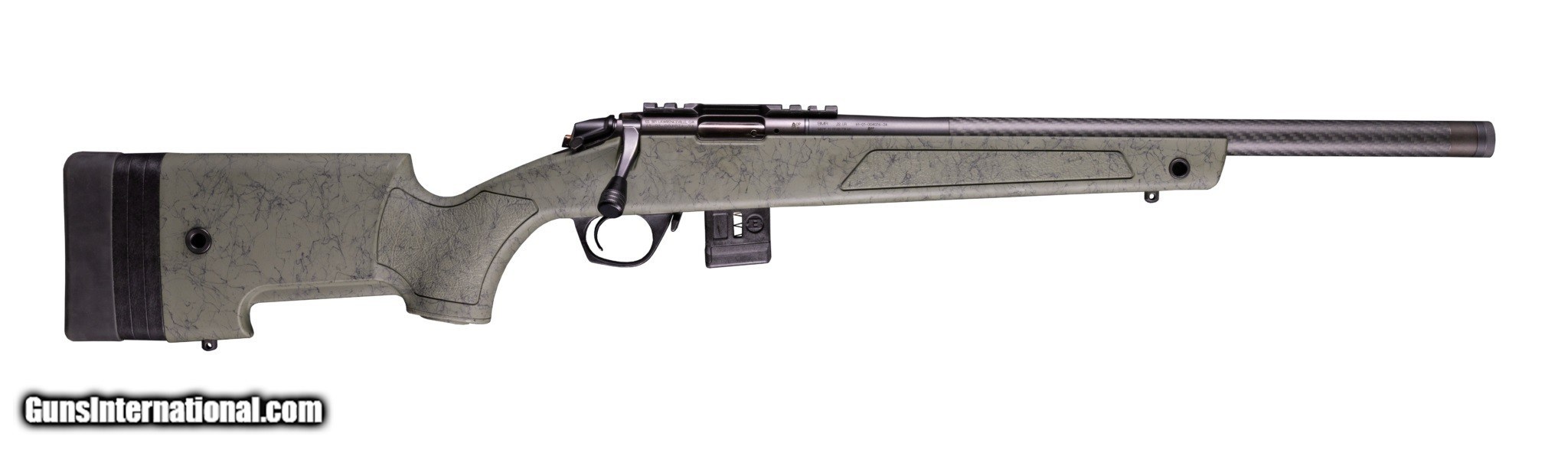 Description: NEW IN STOCK Bergara BMR-X Carbon Fiber .22 WMR 18" 1:16" 1/2"x28 #6 CF Bbl Black w/Green Webbing Rifle w/(1) 5rd & (1) 10rd Mag BMR010