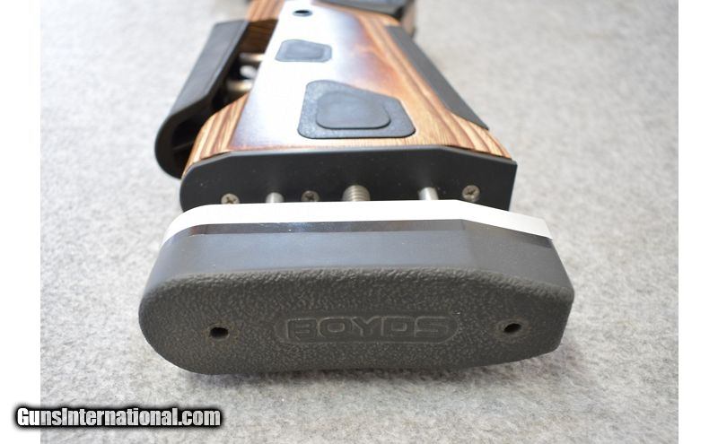Description: Bergara Model B-14 in .22-250 Rem. with Boyds adjustable stock and threaded barrel. Boyds stock is adjustable length of pull and cheekpiece. Features a QD slot for a sling, second front sling swivel for mounting a bi-pod. .22-250 Remington SOLD Chambers: .22-250 Rem Metal Condition: Very Good Wood Condition: Very Good Bore Condition: Good Barrels: 24 Butt Pad: Very Good Weight: 10 lbs. Item Location: Billings, MT |