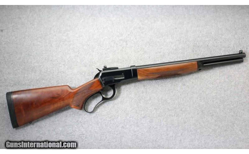 Description: This Big Horn Armory model 89 "Spike Driver" is chambered in .500 Smith & Wesson Magnum. Built from the ground-up and solidly engineered using the latest CNC technology, the Model 89 embodies the best of the old Model 86 and Model 92 lever-actions in a modern platform capable of handling the powerful .500 S&W Magnum. The American black walnut furniture is appointed with a steel fore end cap, generous recoil pad, and sling studs. Sighting consists of an eye-catching white bead front and a Skinner aperture rear sight. This is a fast-handling rifle that packs a big and hard punch. .500 S&W Magnum SOLD Metal Condition: Excellent Wood Condition: "Good with some dents, chips and scratches Bore Condition: Excellent Barrels: 18 inch barrel Stock Dimensions: 13 1/2 inch LOP Fore End: Checkered walnut Butt Pad: Decelerator pad Weight: 7 lbs. 13 oz. Sights: Skinner aperture rear sight with bead front Item Location: Lehi, UT |