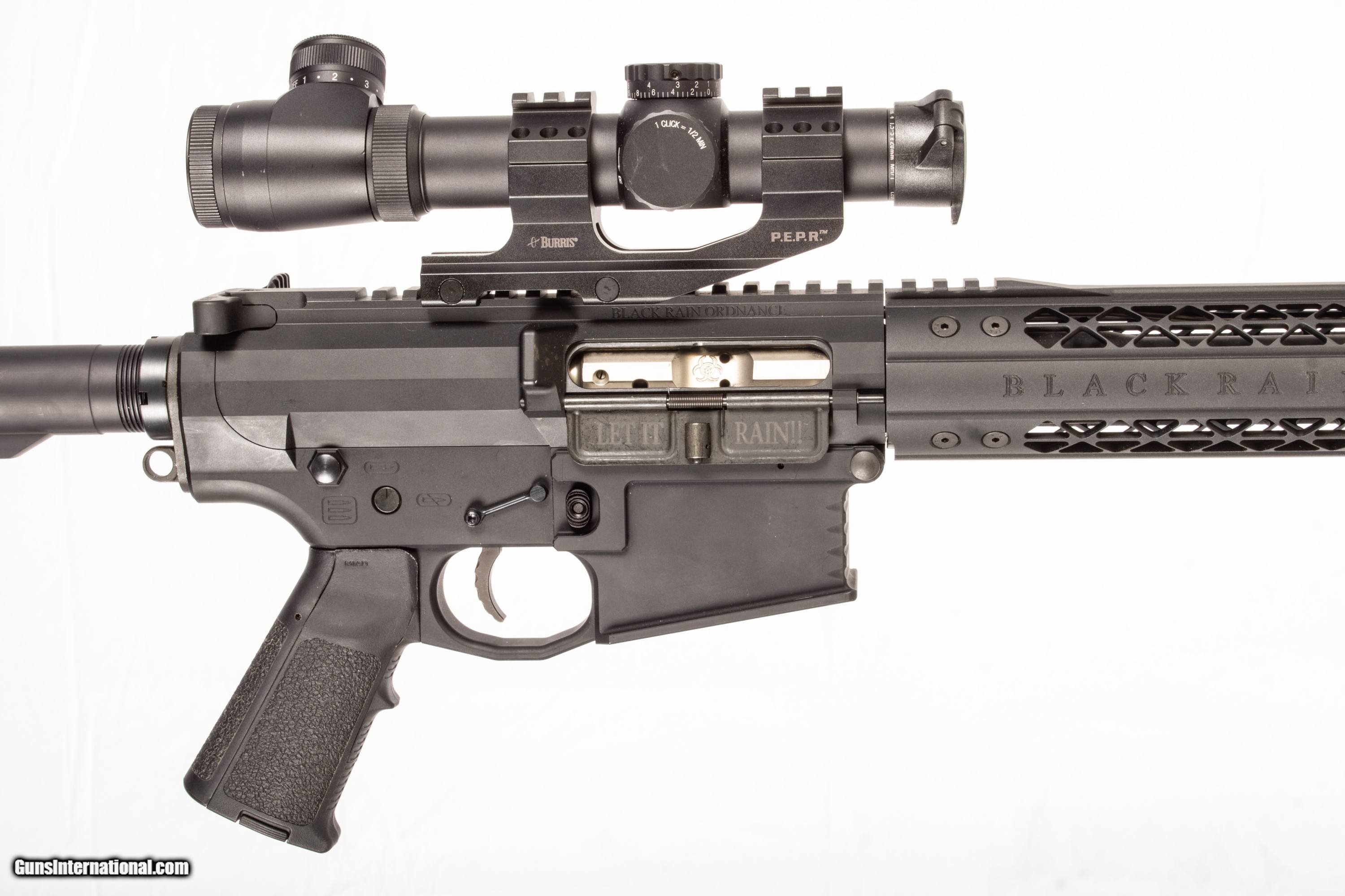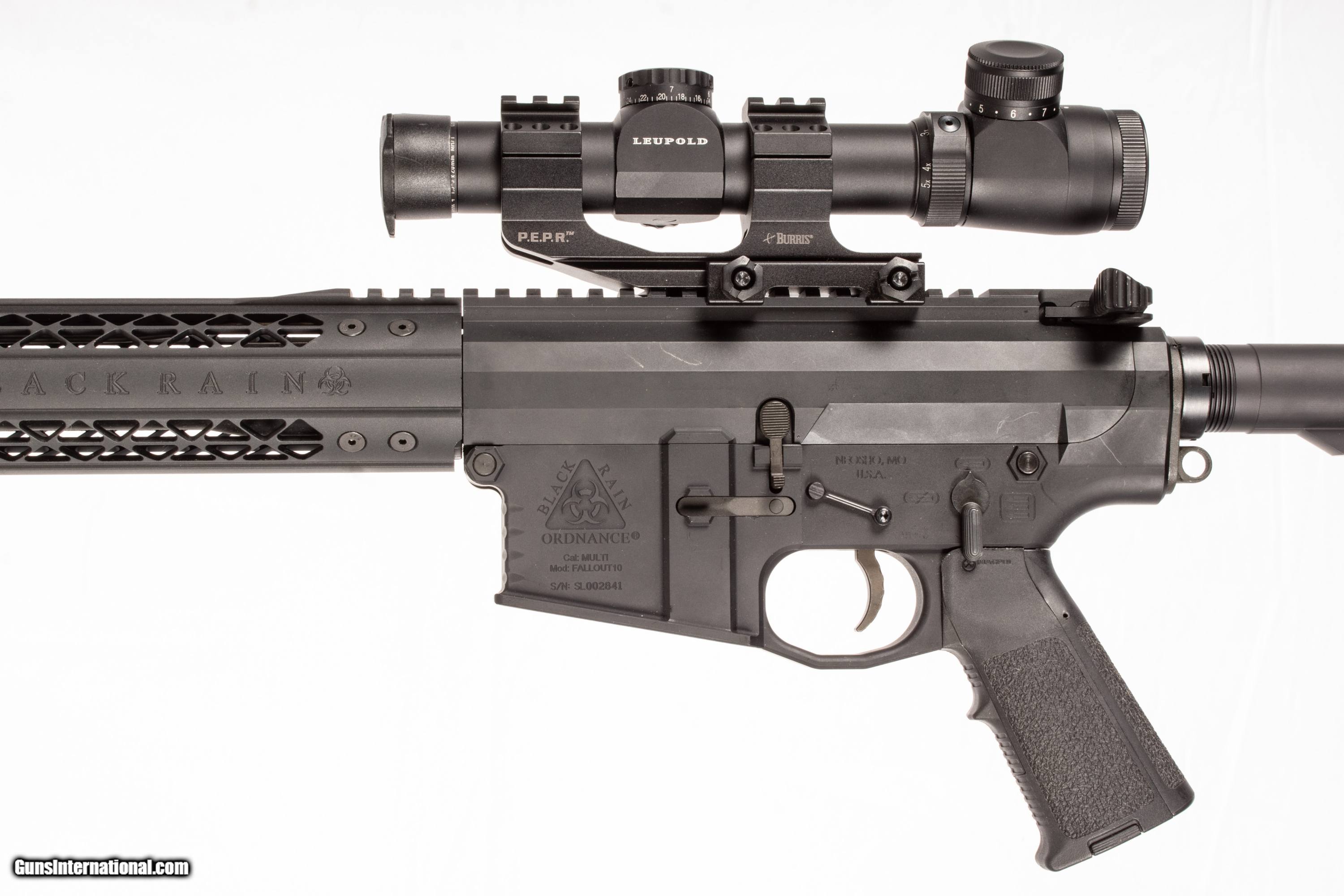 Black Rain Ordinance Fallout 10 chambered in 308 Win with an 18 inch barrel bright & shiny bore and a Leupold Mark 4 1.5-5x20 illuminated optic. This gun is in excellent condition and is covered by Dury's Lifetime Warranty.