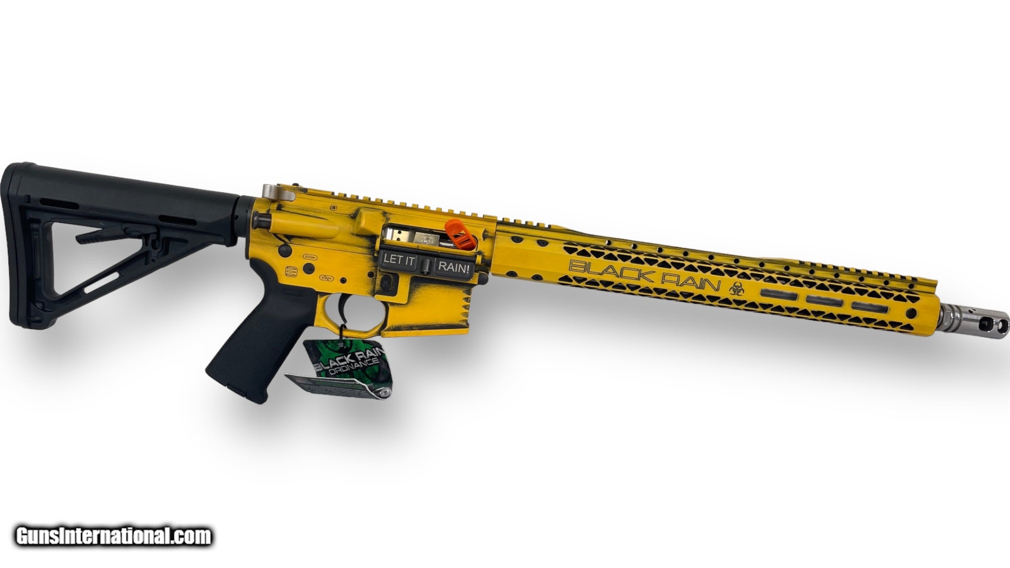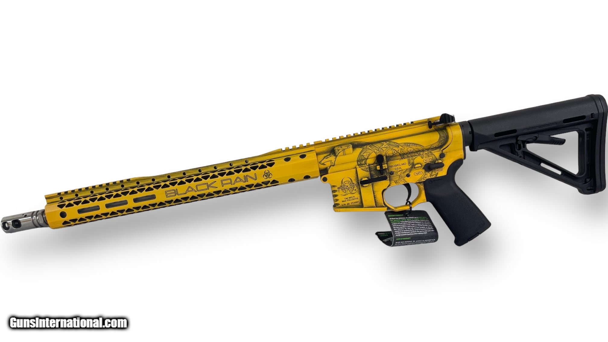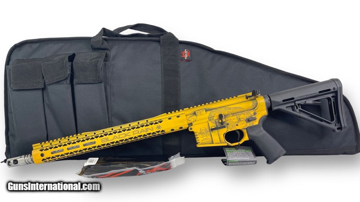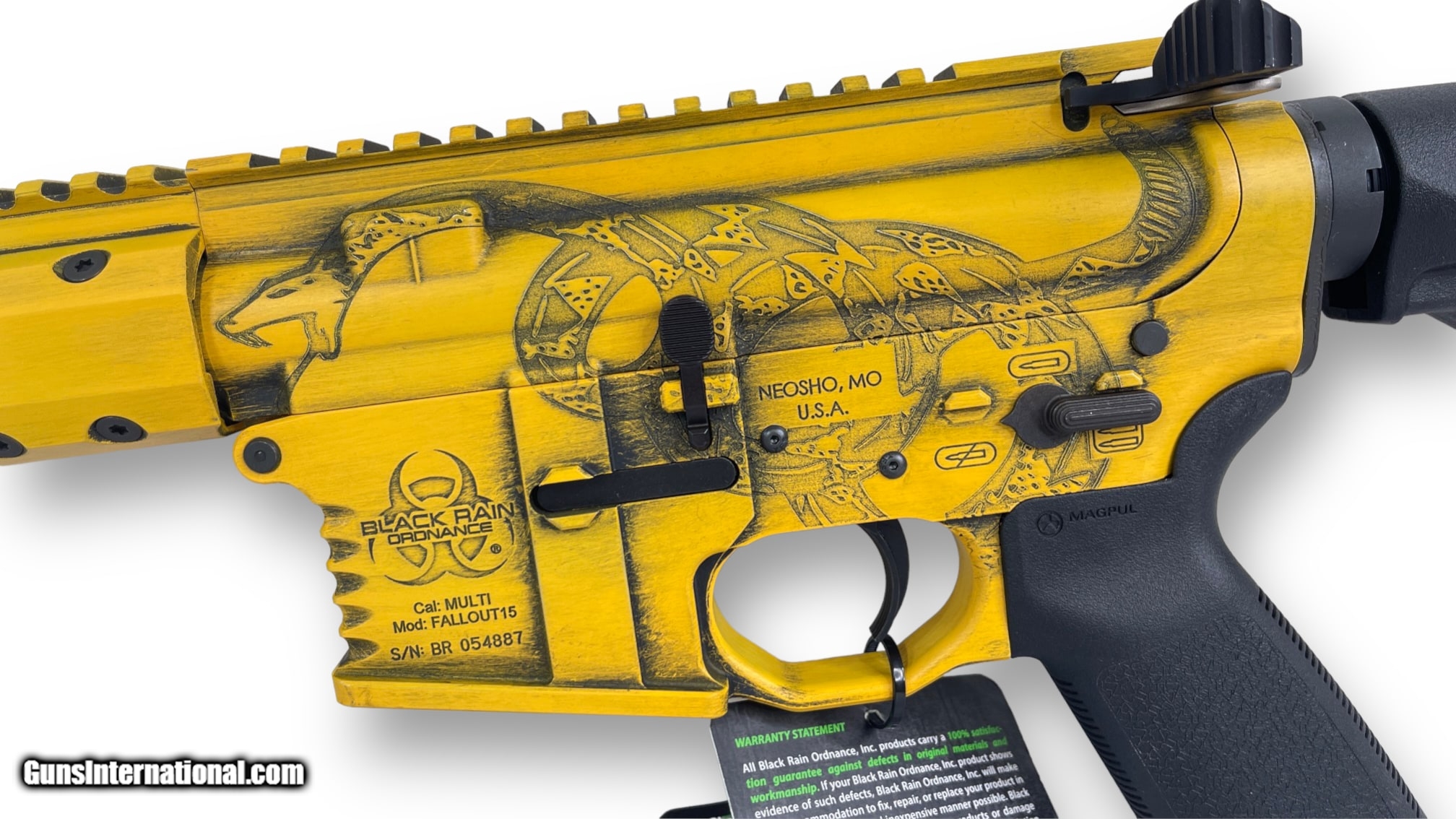 Description: Guns Listing ID: 666719 This listing is for a used but LIKE NEW UNFIRED Black Rain Ordnance Fallout-15 Don‚‚t Tread On Me Limited Edition AR15 rifle chambered in 5.56. Rifle has a 16\" Stainless barrel w/ Stainless Ported Brake, 15\" Billet Handguard, Billet upper & Lower, Aluminum charging handle, Mapul MOE Grip, and Magpul Collapsible stock. This limited edition rifle has the Gadsden snake laser engraved along lower and upper. Rifle has been finished in a distressed yellow cerakote. Rifle comes with a matching magazine OEM from Black Rain Ordnance engraved. Rifle is in like new unfired condition. Rifle includes original soft case, 1 limited edition magazine, and one standard 30rd magazine SOLD Manufacturer: BLACK RAIN ORDNANCE Model: Fallout 15 Billet Rifle Caliber Info: 5.56 Condition: Used - Non-Certified Barrels: 16 BARREL Finish: YELLOW |