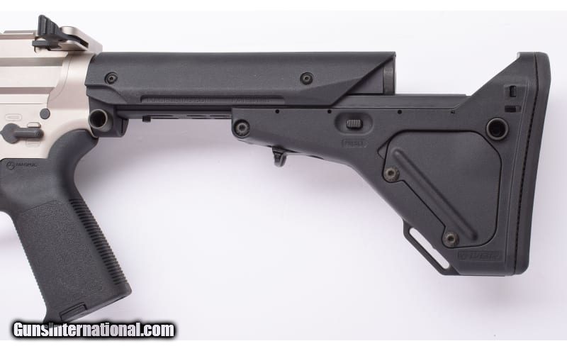 Description: Pre-owned rifle, VERY GOOD PLUS overall. One 15 round magazine. 6.8mm Remington SPC SOLD Metal Condition: "Nickel Receiver, Stainless Barrel Bore Condition: "Bright, Sharp Barrels: 16" Fluted Stainless Stock Dimensions: Adjustable Fore End: 12 Inch Quad Rail Butt Pad: Magpul UBR Buttstock Weight: 8 Lbs 3 Oz Sights: Optics Ready Rails Item Location: Buda, TX |