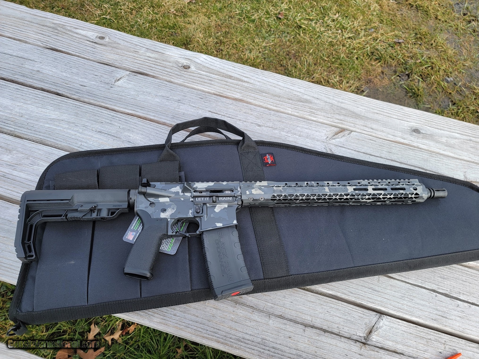 Description: Guns Listing ID: 911278 BLACK RAIN ORDNANCE SPEC-15 5.56 GRAY SMOKE CERAKOTE 15? HANDGUARD, BATTLELINK MINIMALIST STOCK/ 16? BARREL. COMES WITH A SOFT CASE (1) 30 ROUND MAG. SOLD Manufacturer: BLACK RAIN ORDNANCE Model: SPEC15 Caliber Info: 5.56X45MM NATO Condition: new Barrels: 16 BARREL Finish: GRAY SMOKE CAMO |