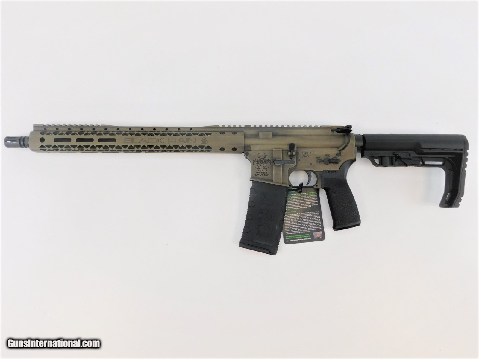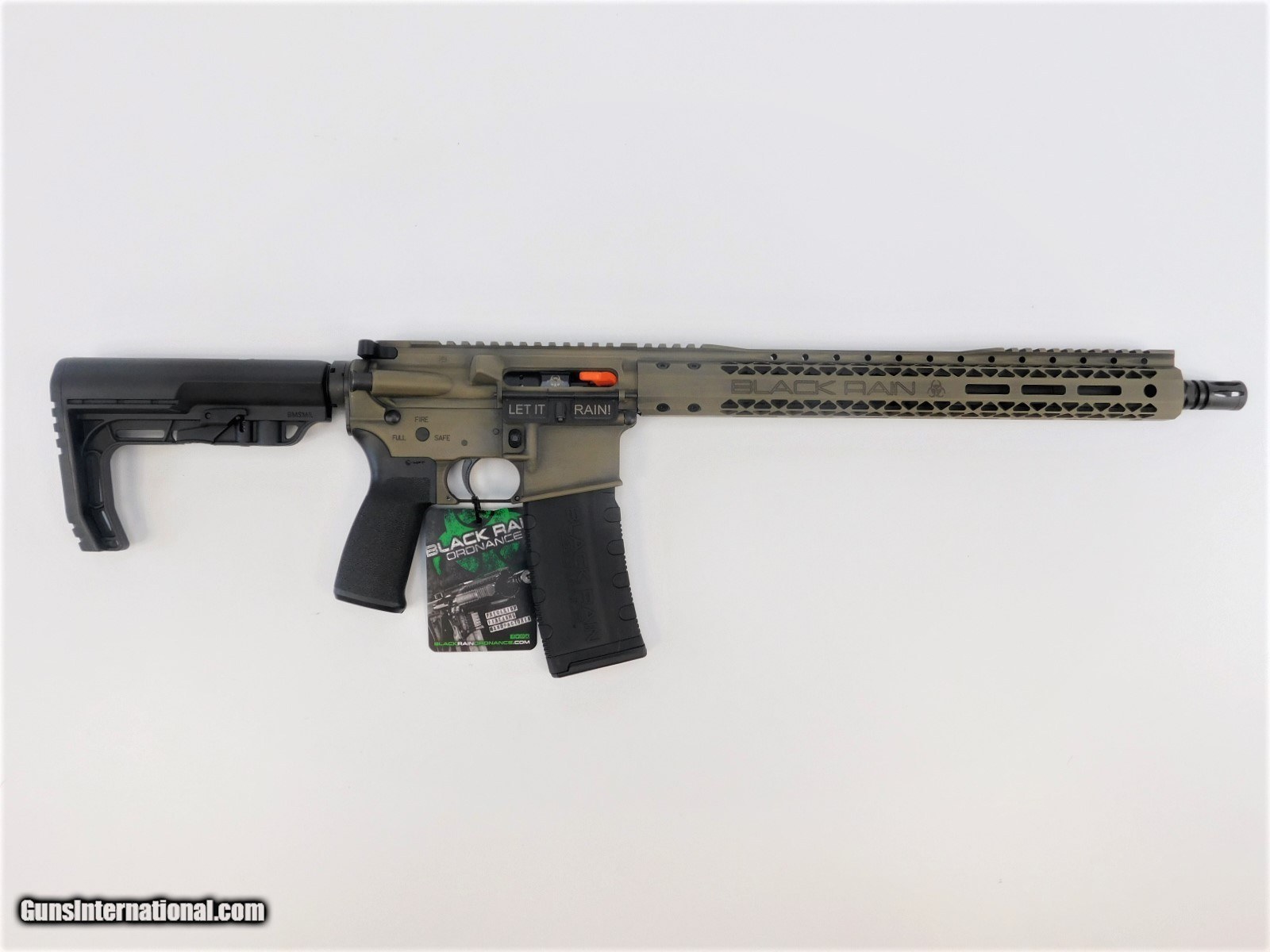 Description: BRAND NEW IN THE BOX AND READY TO SHIP! BUY IT NOW!! Manufacturer: Black Rain Ordnance Model: SPEC15 Fission SKU: BRO-SS2020FRFDE Caliber: 5.56 NATO / .223 Remington Gas System: Direct Impingement; Low Profile Non-Adjustable Gas Block; Carbine Length Capacity: 30 Rounds Barrel: 16” 4150 Chromoly Barrel Muzzle Device: A2 Flash Hider Bolt Carrier Group: Nitride Coated SPEC15 Receiver: Cerakoted Forged Aluminum Upper/Lower Receiver Set Furniture: MFT Minimalist Stock and Grip Handguard: 15" Handguard Color: Flat Dark Earth Battleworn Cerakote Weight: 7 lbs 8 oz Overall Length: 32.5" - 36" Black Rain Ordnance manufacturing standards are prominent throughout our line of Spec weapons, allowing us to produce the highest quality rifle with a cost-effective price tag. The Chromoly barrels and Black Nitride Bolt-Carrier Groups in the Spec Series combine to provide the reliability and dependability you expect from the BRO family of rifles. Whether it’s your first rifle, a patrol weapon, or simply supplementing your collection, the Spec Series is a great addition to your lineup. The Black Rain Fission rifle features aa aluminum receiver with a Flat Dark Earth Battleworn Cerakote finish, "LET IT RAIN" engraved on the dust cover, Salt Bath Nitride Coated Spec15 BCG, Direct Impingement gas system 750 Non-Adj Gas Block, Spec15 Forged Charge Handle, 15" M-LOK Slim aluminum handguard and a MFT Minimalist black grip and stock. KNOW YOUR LOCAL AND STATE LAWS!! ORDERS WILL ONLY BE ACCEPTED FROM US RESIDENTS OF THE LOWER 48 STATES, ALASKA AND HAWAII. OUR FFL CLASS DOES NOT ALLOW FOR THE EXPORT OF FIREARMS, THEREFORE WE CANNOT SHIP OUT OF THE US. IF YOU ARE INTERESTED IN PURCHASING THIS ITEM, PLEASE COMPLETE YOUR ORDER BY REFERRING TO THE "SELLER'S INFORMATION" ABOVE. SOLD Rifle Caliber: 5.56x45mm NATO |