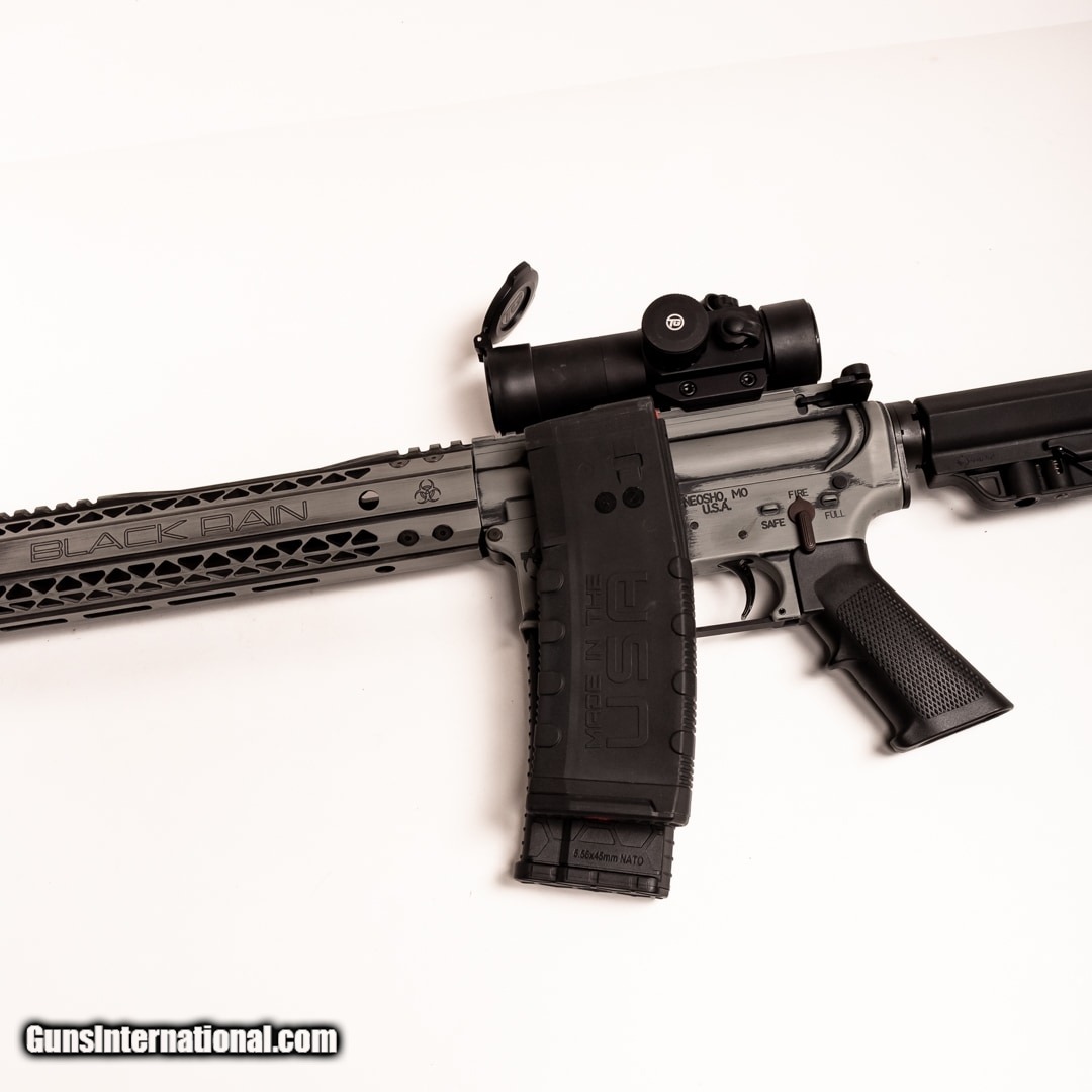 Description: Guns Listing ID: 717363 The Black Rain Ordnance Spec15 is a precision machined AR-15 that‚‚s great for target shooting, property defense, and even hunting. This mid-length Spec15 features a 1/7 twist and a TruGlo red/green dot scope. Purchase includes the original tactical soft case and two 30-round magazines. Get the best bang for your buck when you get a Certified Used Firearm . When you see the Certified Used stamp on any of our firearms, you can be confident that you’re getting exactly what you want – a gun only in very good to excellent condition and held to the highest quality standard. All Certified Used Guns come with a ‘no questions asked’ return policy . PLUS, ALL CERTIFIED USED GUNS SHIP FREE SOLD Manufacturer: BLACK RAIN ORDNANCE Model: SPEC15 Caliber Info: 5.56X45MM NATO Condition: Used - Certified Barrels: 16 BARREL Finish: BLACK |